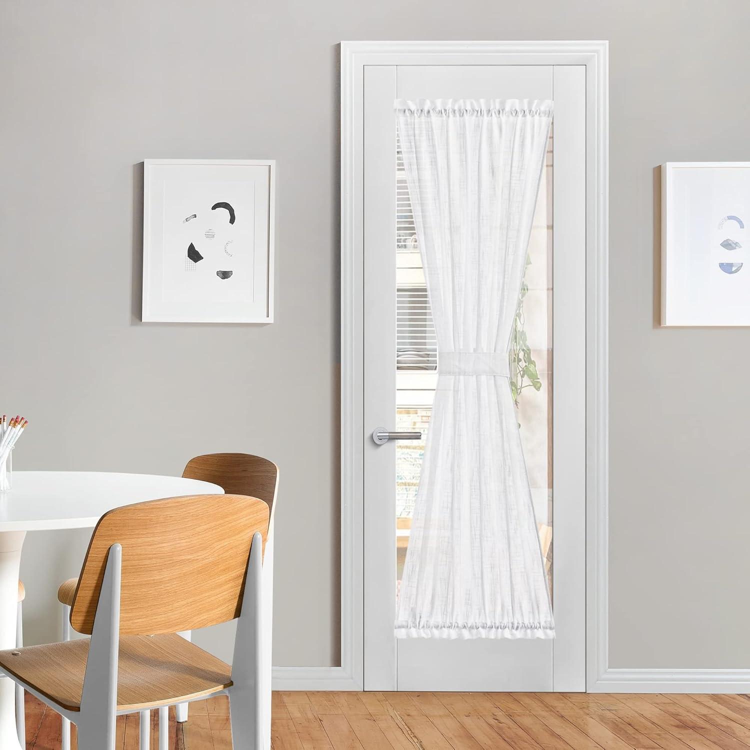 Ready Made: Each package contains 1 panel of 30″W x 40″L linen door curtain with a tie-back. These pretty linen sheer door panels feature top and bottom rod pockets for easy installation. It is ideal for a door window that brings French elegance to your room.