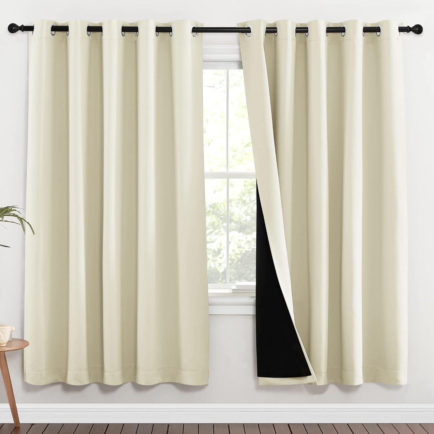 imageNICETOWN Living Room Completely Shaded Draperies Privacy Protection ampamp Noise Reducing Ring Top Drapes Black Lined Insulated Window Treatment Curtain Panels Beige 2 Pieces W70 x L72