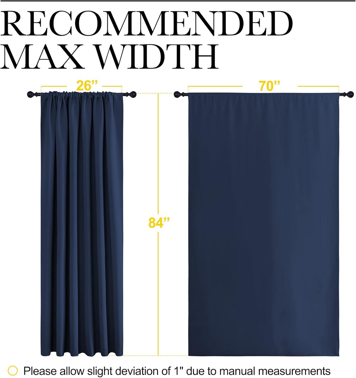 ELEGANT DESIGN: 2 panels per package. Each Blackout Curtain Panel measures 70 inches wide x 84 inches long. The NICETOWN drapery is constructed with rod pocket, fitting the curtain rod of your choice up to 2 inches in diameter, making the curtains easy to install and slide.