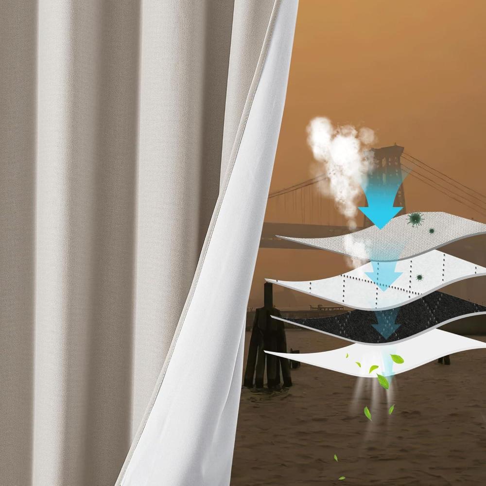 imageNICETOWN Lower PM25 Particles Full Shading Curtains Super HeavyDuty Noise Absorb Lined Blackout Curtains for Bedroom Privacy Window Treatment White Pack of 2 52 inches W x 95 inches LDust Filter  Grommet  Beige Linen