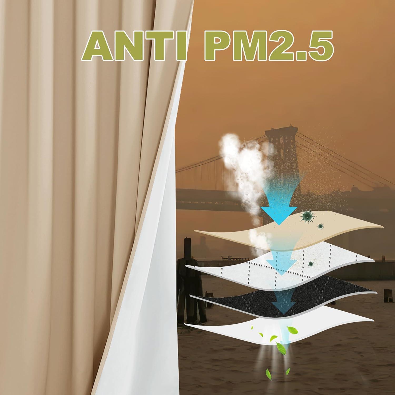 Anti-dust Curtains: Lab proven effective in filtering 62.5% of dust particles due to melt blown layer(mask raw material) added. Effectively prevent wildfire smoke allergenic pollen, pet hair and street dust from entering the room, isolating dangerous sources of respiratory diseases. Ideal for pet owners and allergy sufferers.