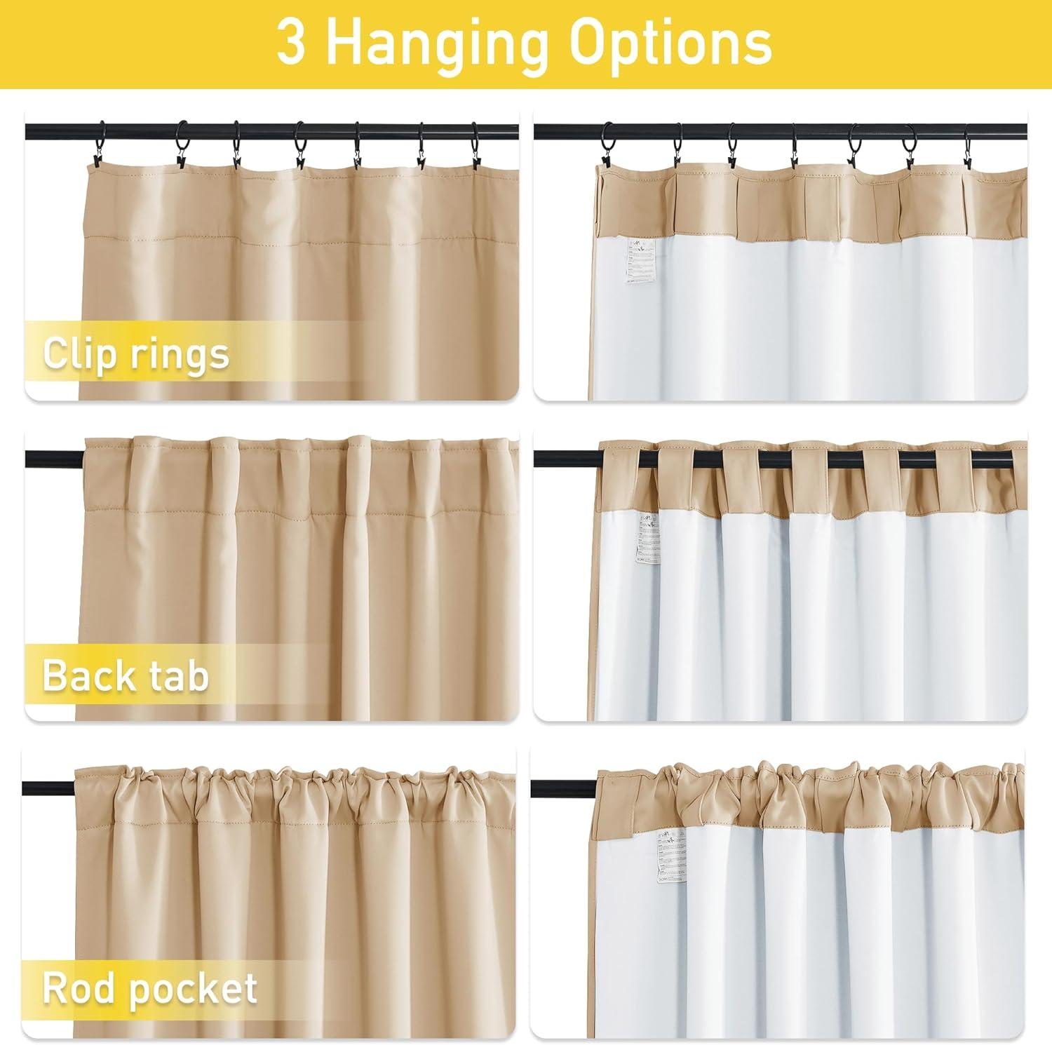 Thermal Insulation: 4-in-1 curtains can create an energy-efficient thermal barrier against heat and cold, keeping your room cooler in the summer and warmer in the winter. 2 panels per package. Each Curtain with 1.6″ diameter rings measures 52″ wide x 95″ long (Total width of 2 panels is 104″).