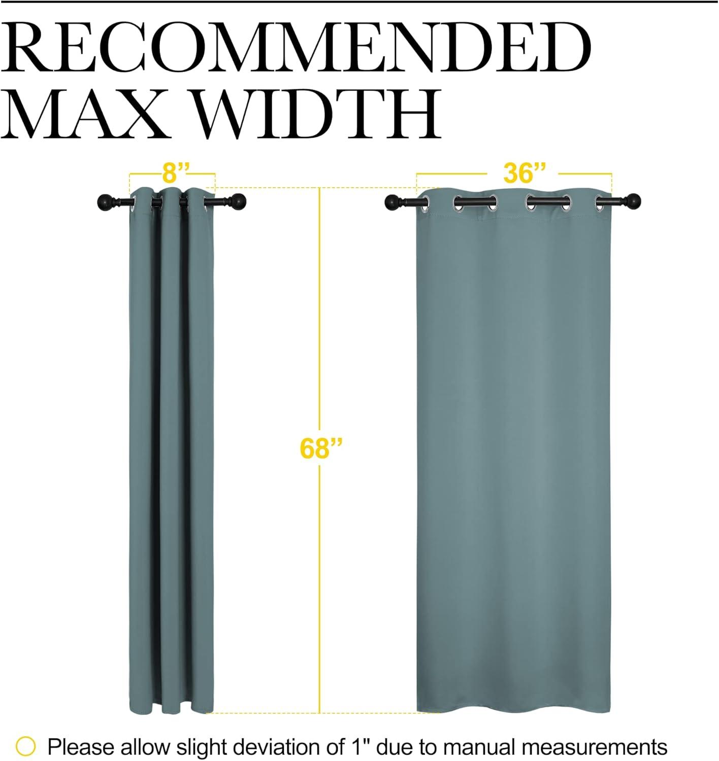 READY MADE: Set includes 2 BLACKOUT CURTAINS PANELS of 42″ wide x 68″ length with 6 grommets top each. Quality fabric without liner feels soft and heavy.