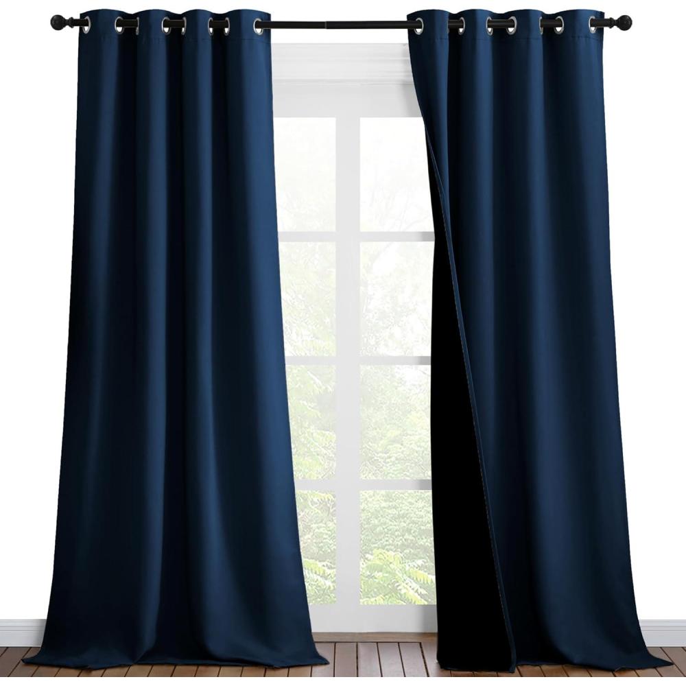 - Package includes 2 panels blackout drapes with black liner backing. 1.6″ Grommet fits various standard or decorative curtain rod/pole.