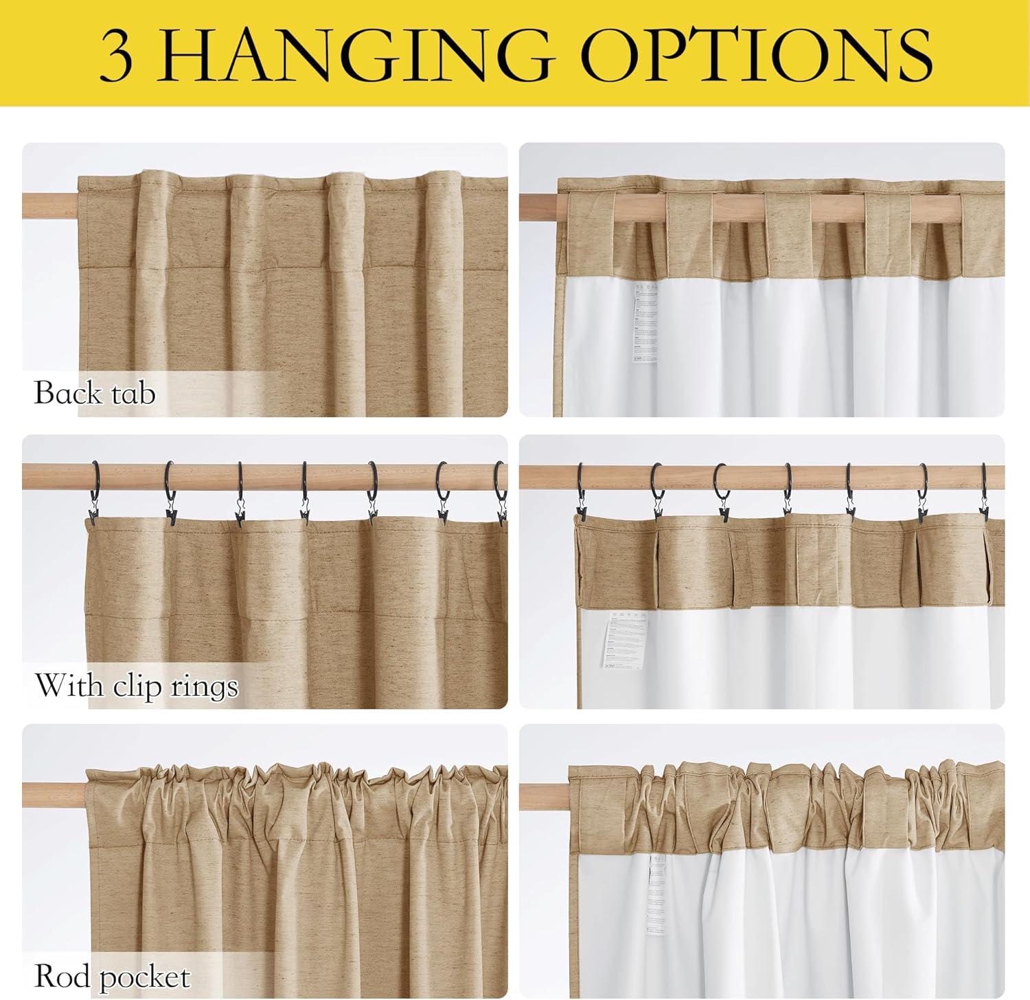 Wide Compatibility: These durable elegant linen blend blackout curtains will decorate your windows and rooms with new sense. Perfect for bedroom, living room, kitchen, patio, room divider, functional and Morden. While still have top performance on energy saving and noise reducing, create airy, breathable, and rustic style.