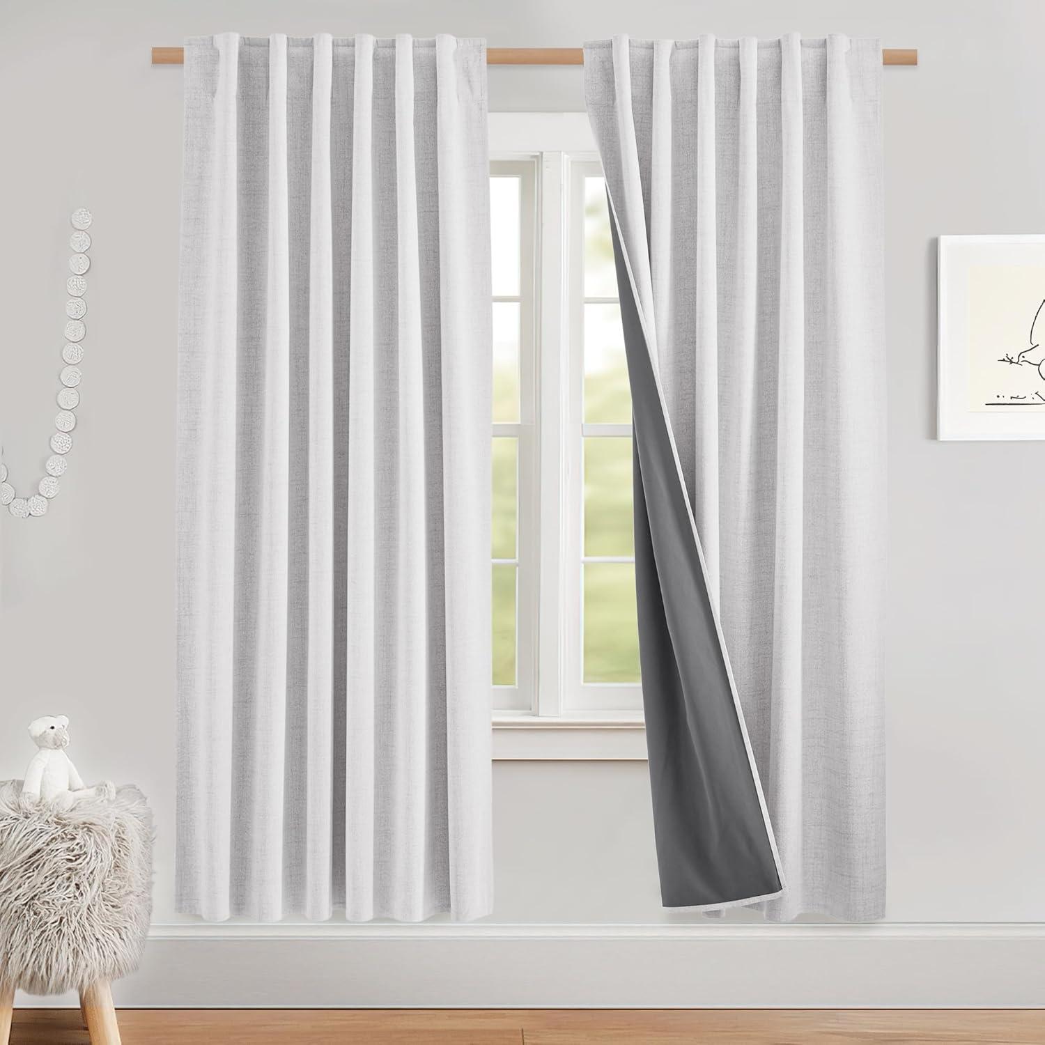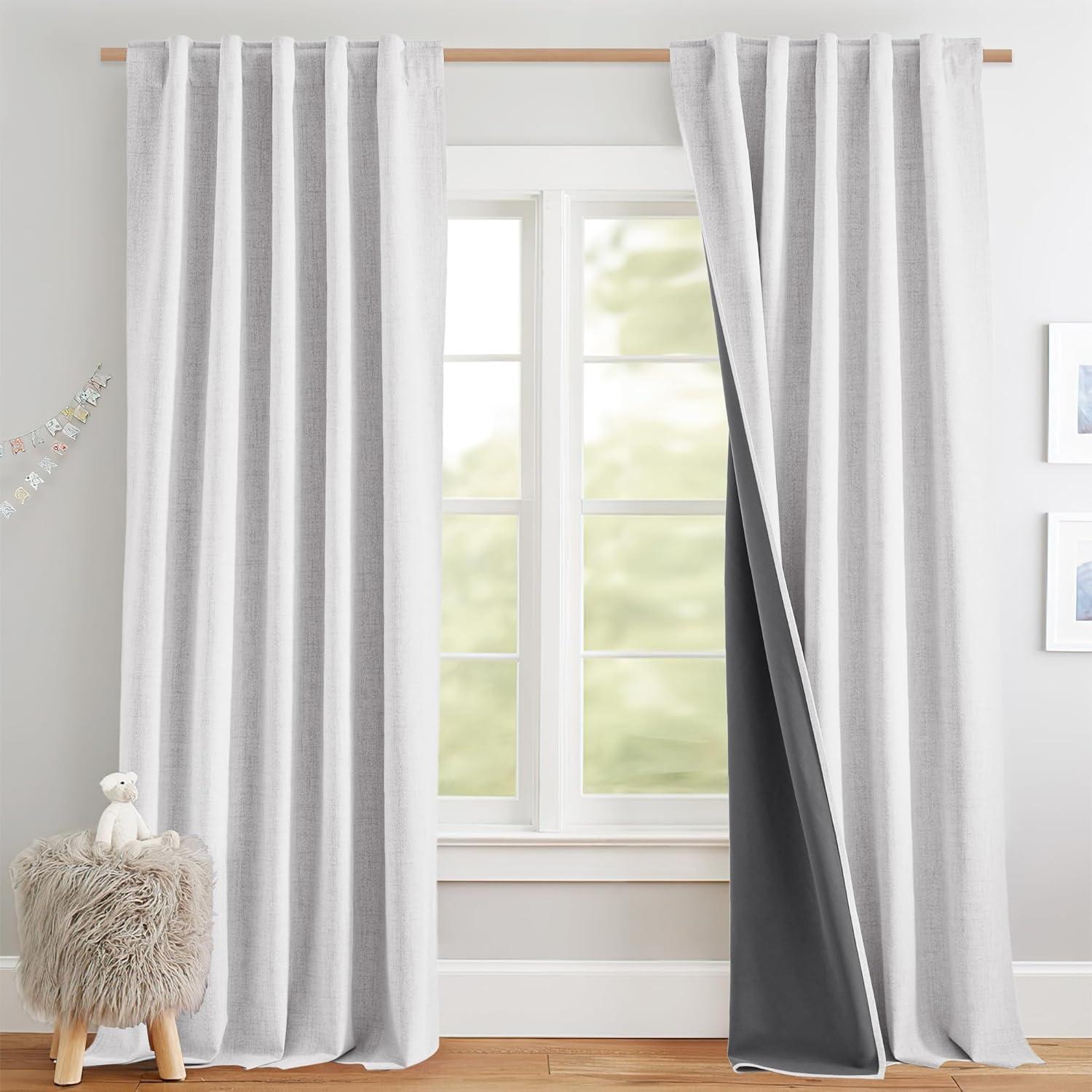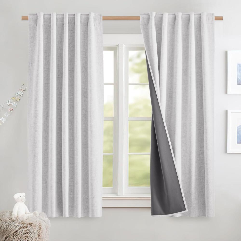 100% Blackout: The real blackout curtains on the market. Linen blackout curtains crafted with white liner backing make the drapes completely keep out the 100% sunlight and UV ray. The greatest benefit is to offer you a real dark environment, bringing you a good night's sleep during the day.