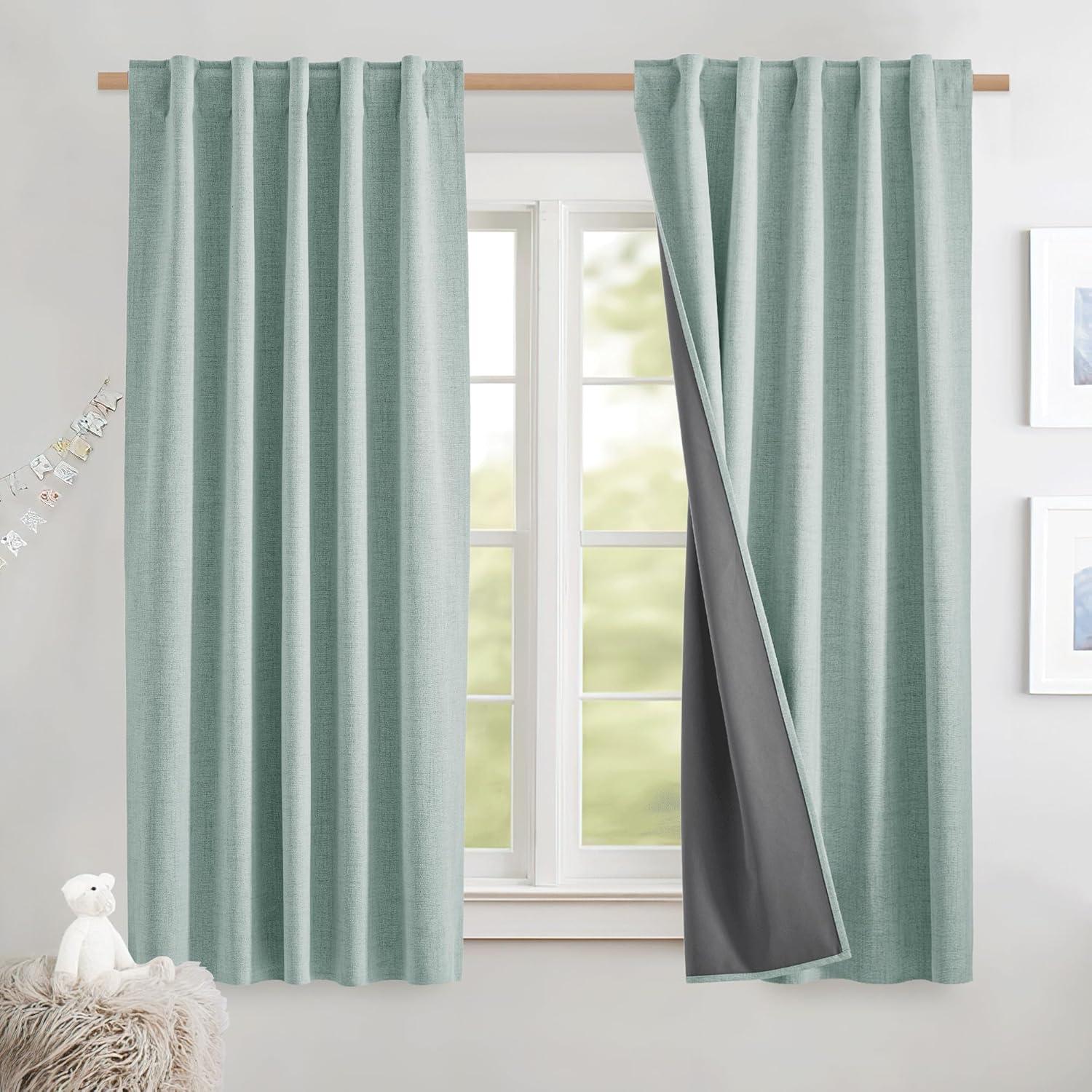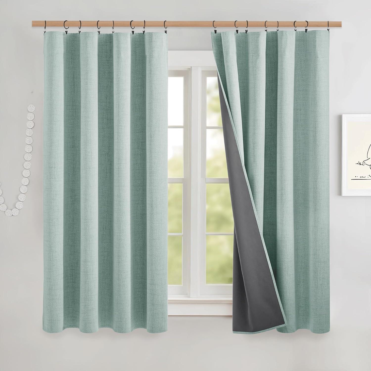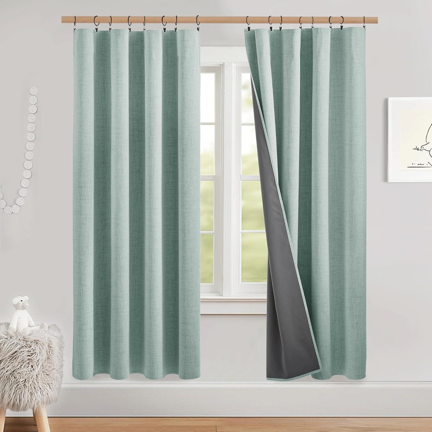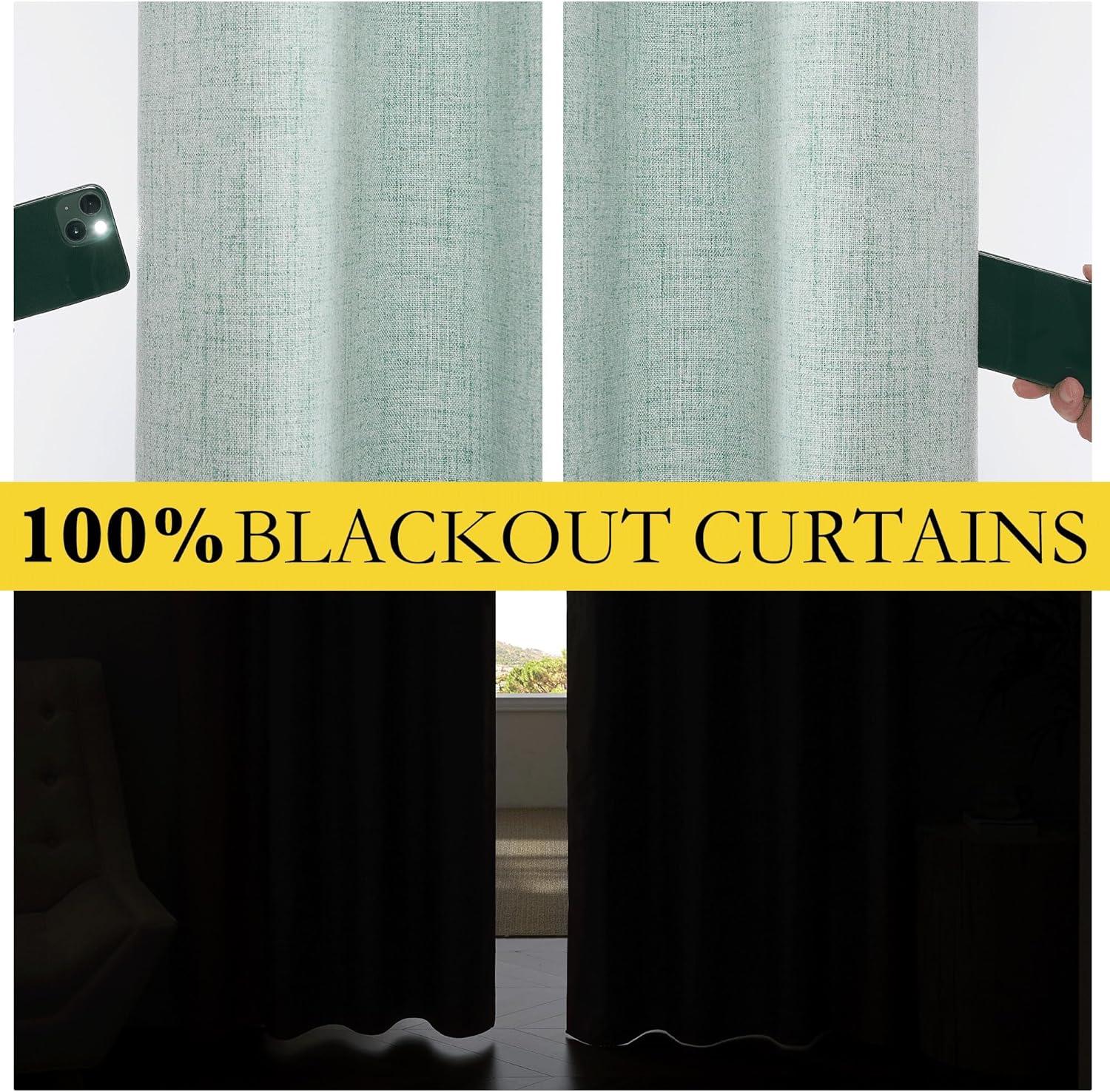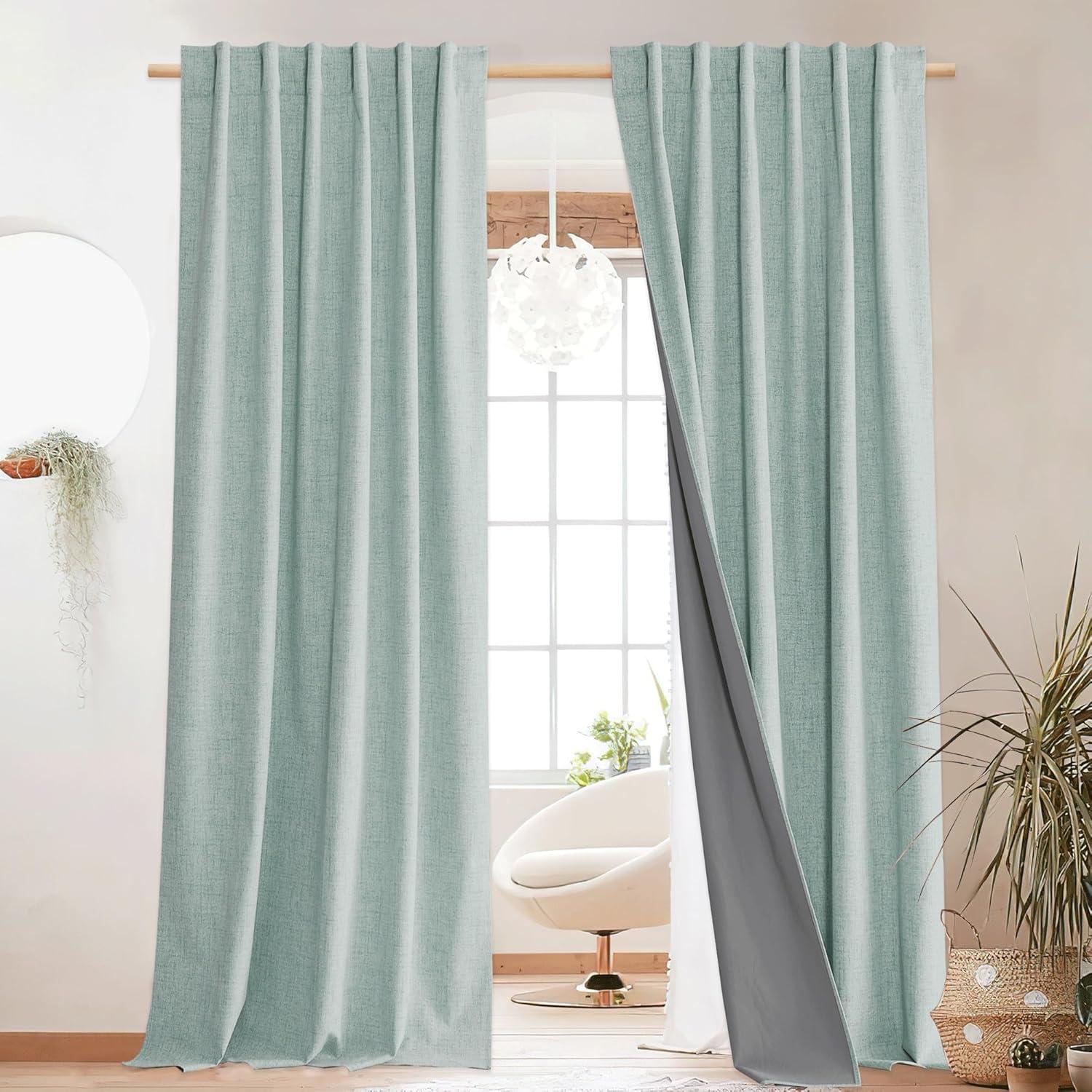 imageNICETOWN Natural Full Blackout Back Tab Linen Curtains 84 Long 2 Panels BohoChic Thick Linen Blend Drapes for Bedroom Thermal Insulated Window Covers with White Backing for Cafe Bar 42 WideSeafoam Green