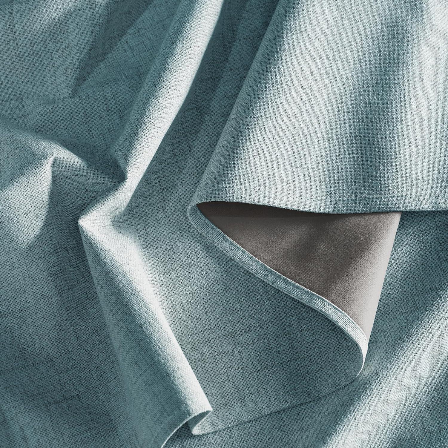 imageNICETOWN Natural Full Blackout Back Tab Linen Curtains 84 Long 2 Panels BohoChic Thick Linen Blend Drapes for Bedroom Thermal Insulated Window Covers with White Backing for Cafe Bar 42 WideSkylark Blue