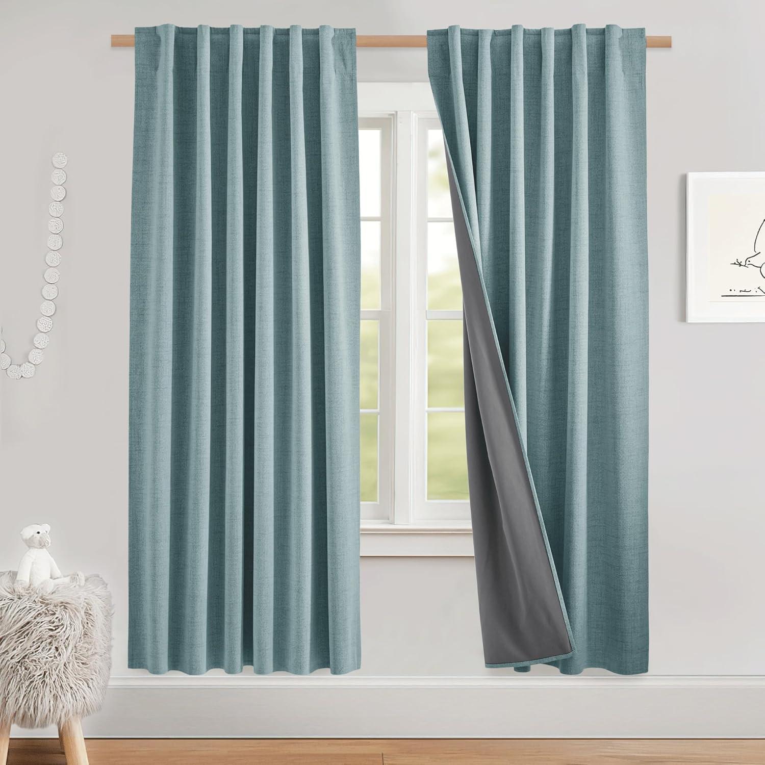 100% Blackout: The real blackout curtains on the market. Linen blackout curtains crafted with white liner backing make the drapes completely keep out the 100% sunlight and UV ray. The greatest benefit is to offer you a real dark environment, bringing you a good night's sleep during the day.