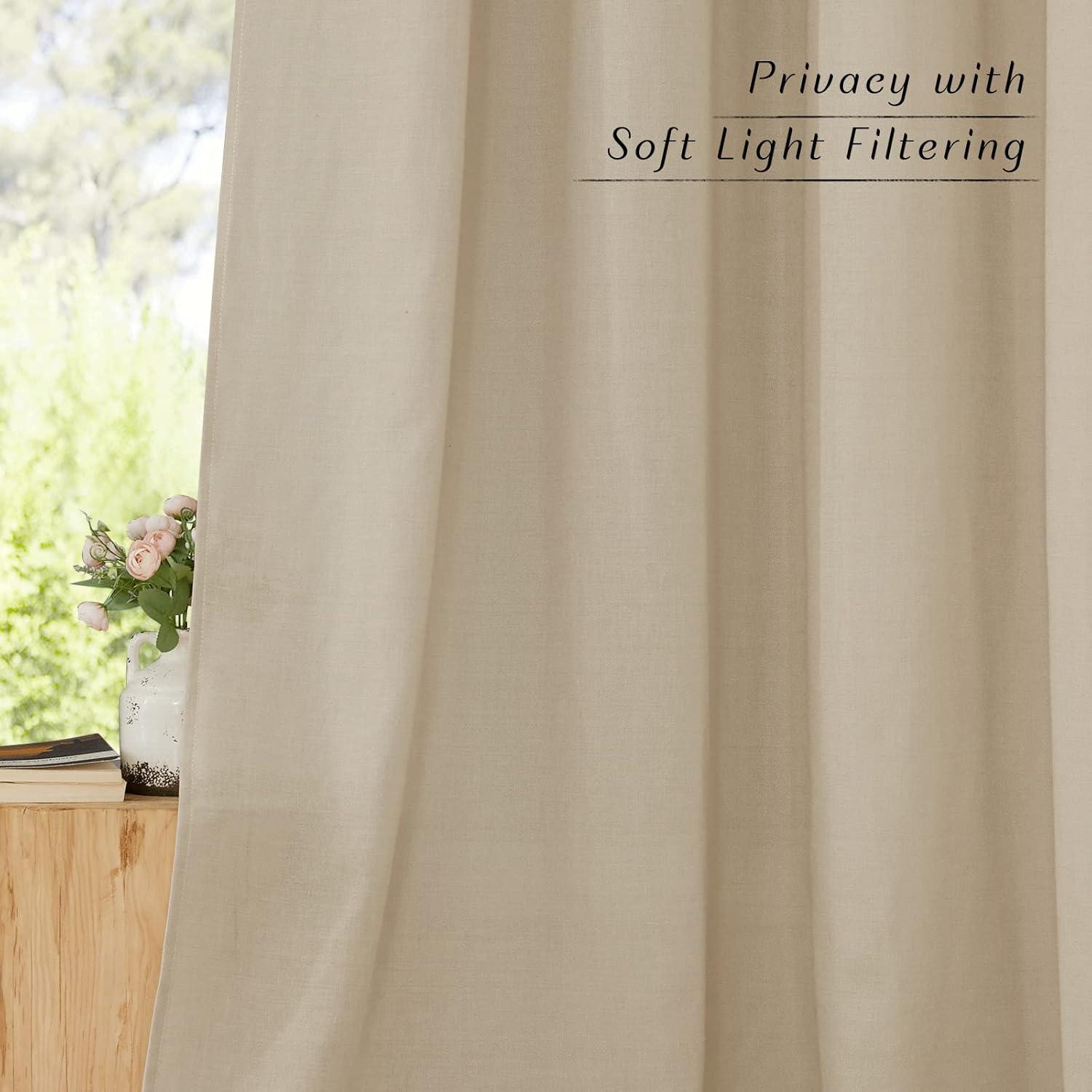 - Linen textured fabric is much thicker than normal sheer, which helps prevent the curious sights from outside and protect your total privacy but you still can enjoy the sunshine and have a happy time with your family.