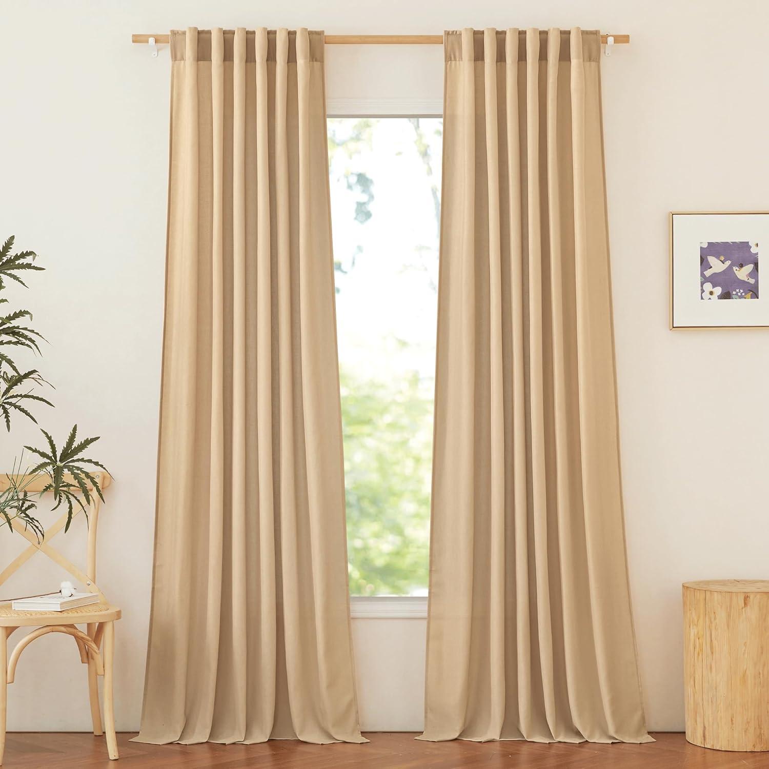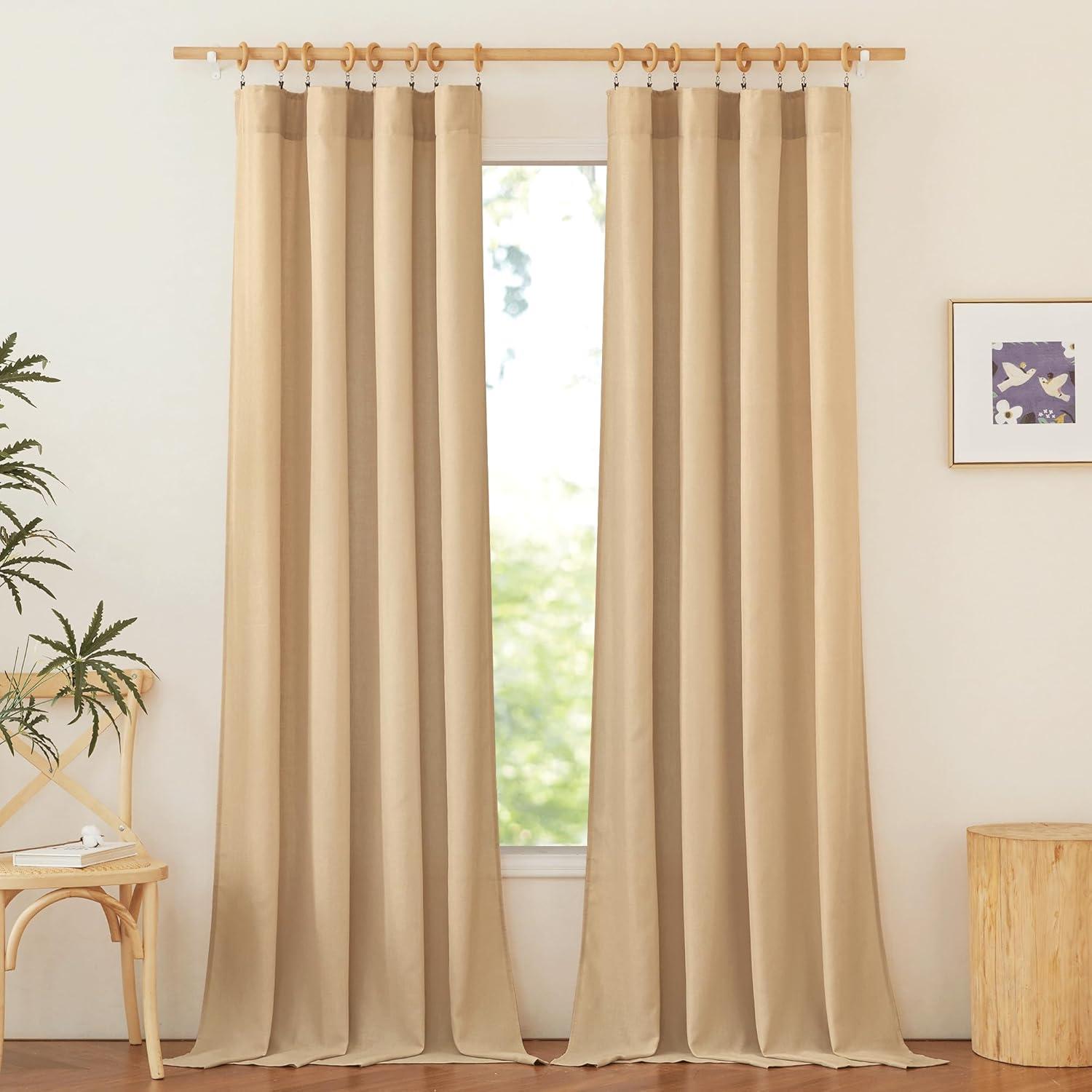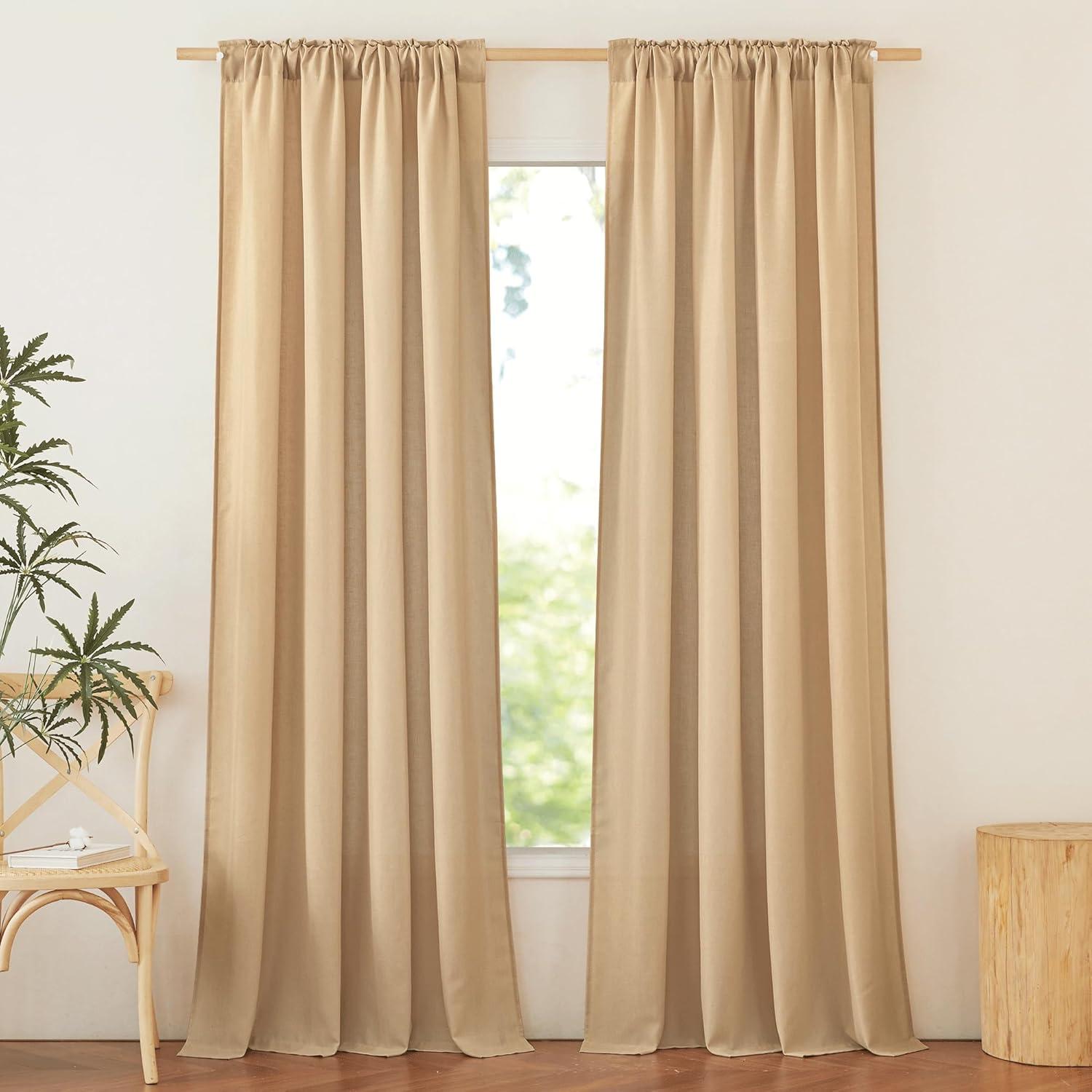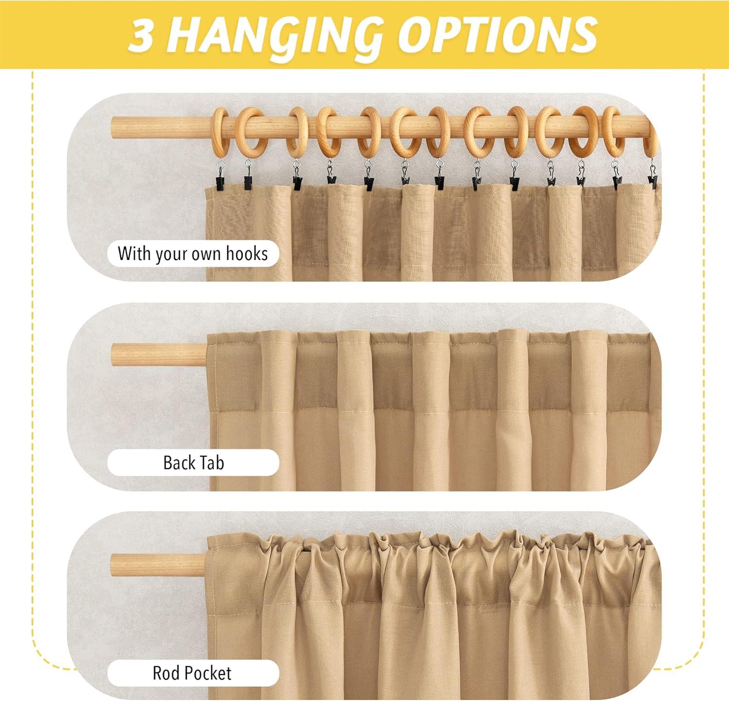 Ready-Made: The package includes 2 panels of thick flax semi-sheer linen curtains, and each measures 34″W (68″W for pair), with a rod pocket and back tab design which is 2″ inner Diam to fit most of the curtain rods.