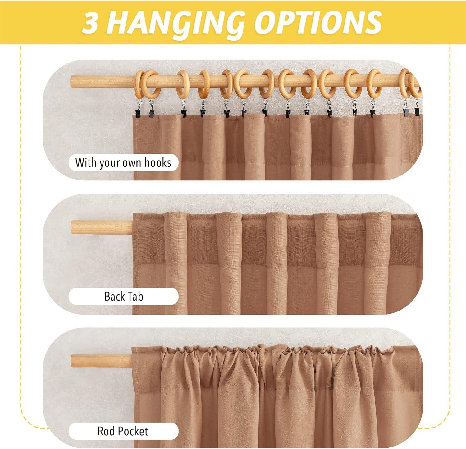 Ready-Made: The package includes 2 panels of thick flax semi-sheer linen curtains, and each measures 34″W (68″W for pair), with a rod pocket and back tab design which is 2″ inner Diam to fit most of the curtain rods.
