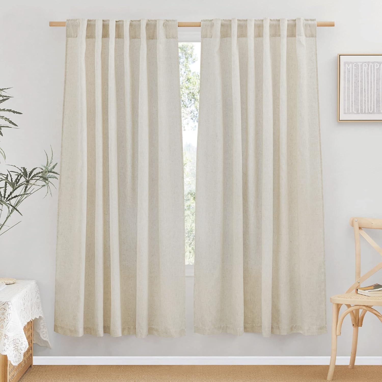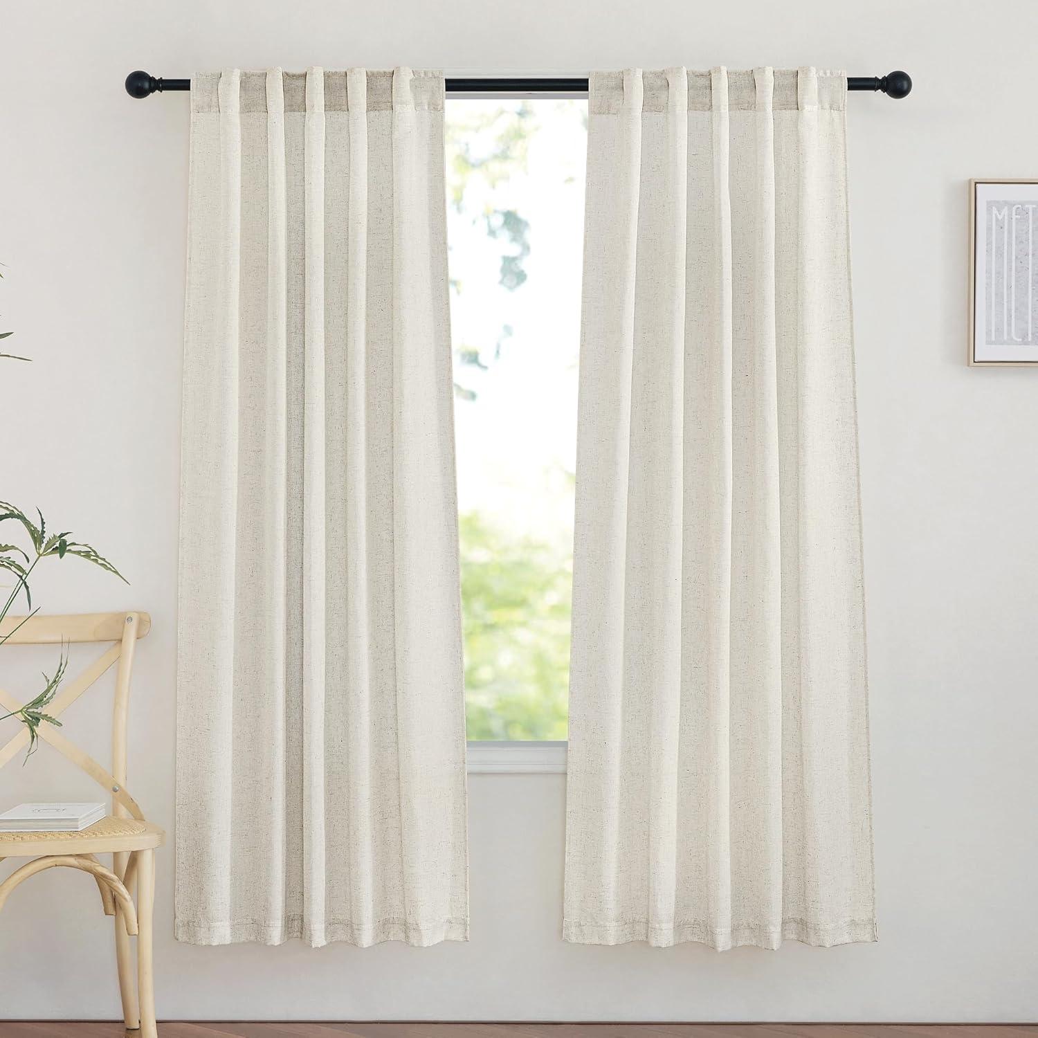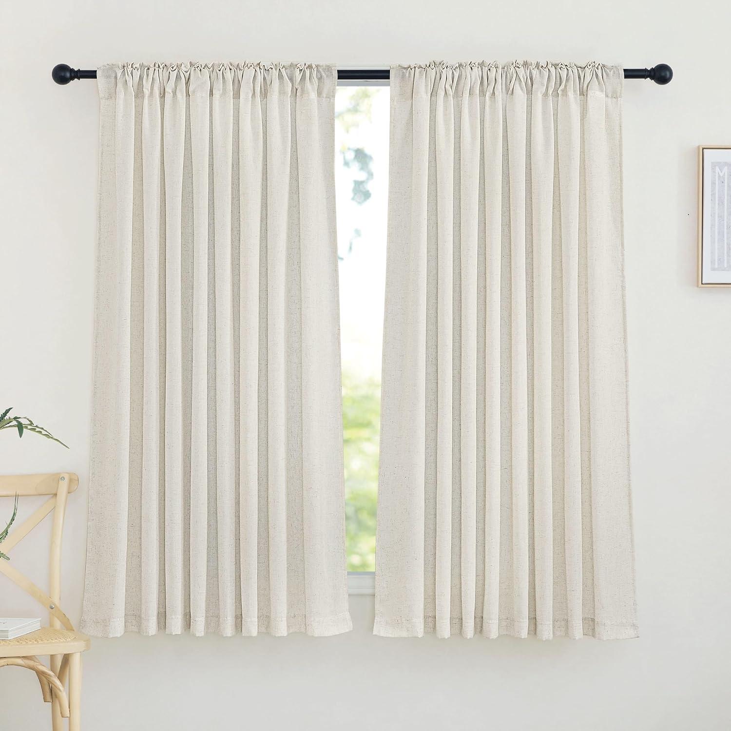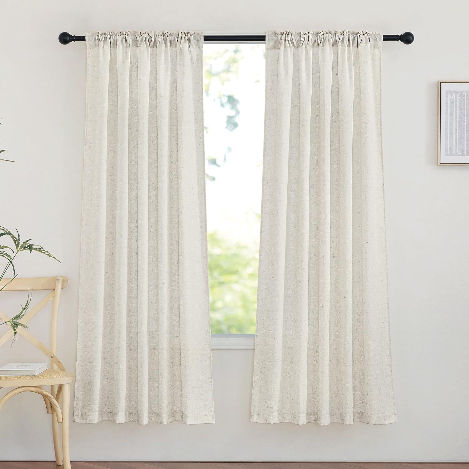 Ready-Made: The package includes 2 panels of thick flax semi-sheer linen curtains, and each measures 34″W (68″W for pair), with a rod pocket and back tab design which is 2″ inner Diam to fit most of the curtain rods.