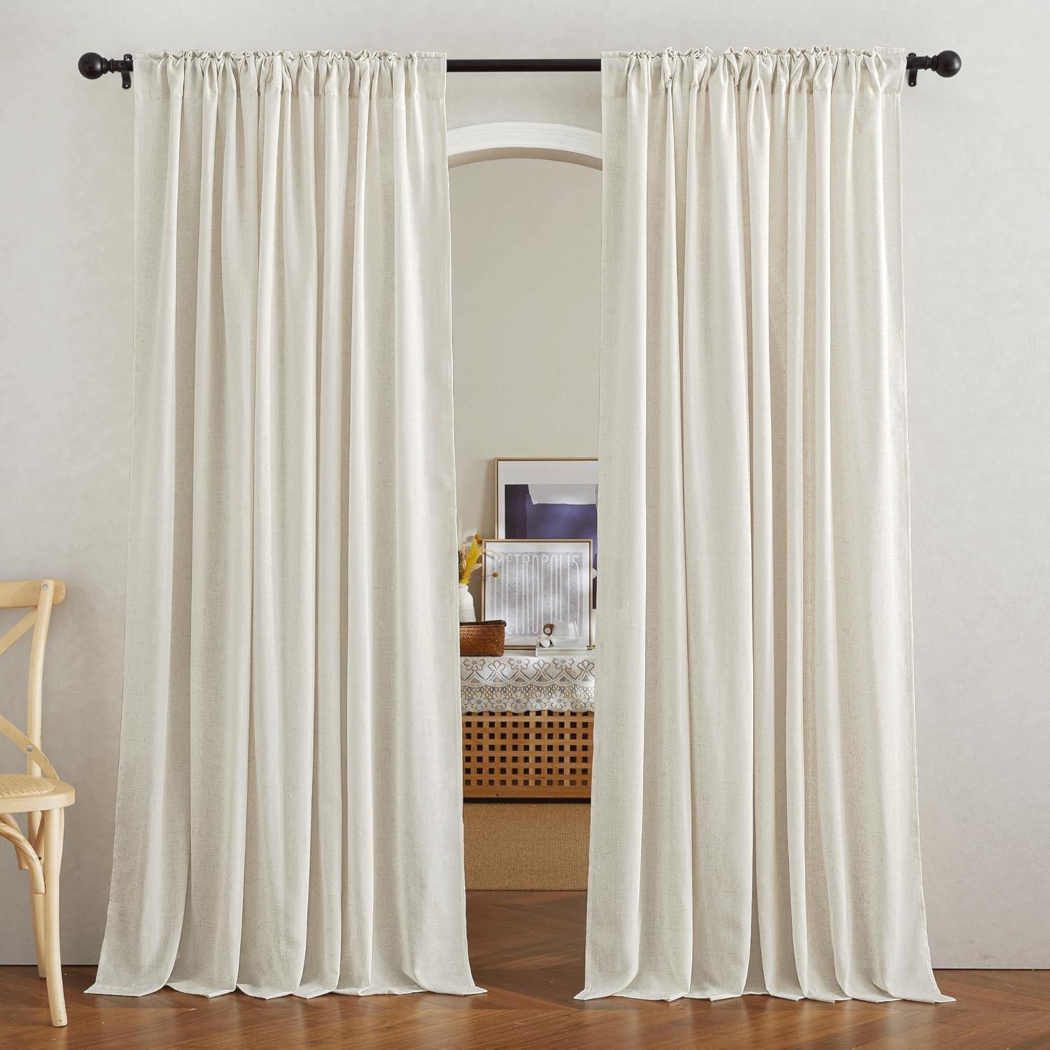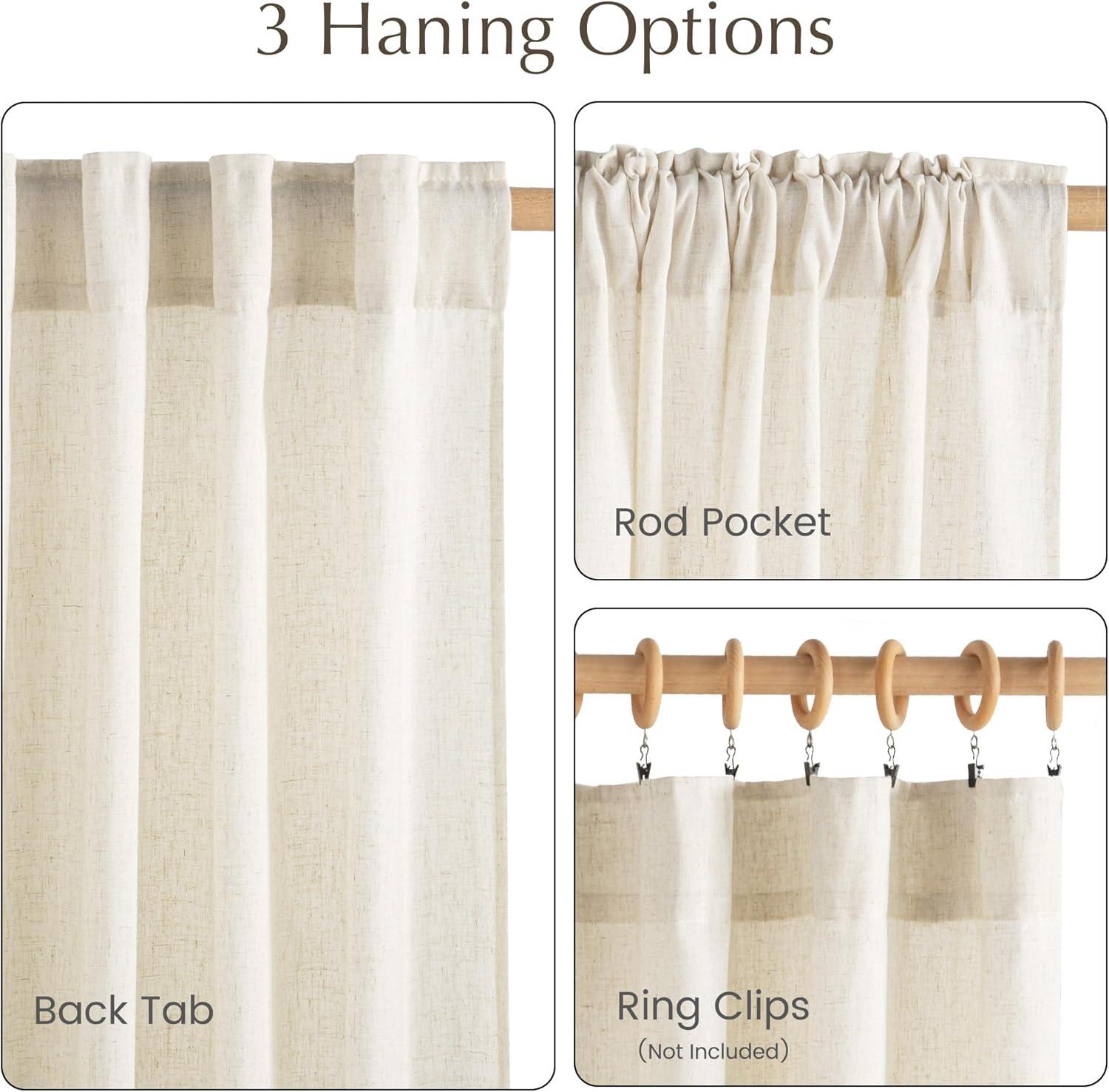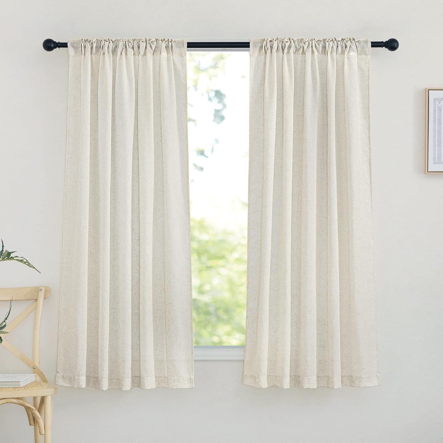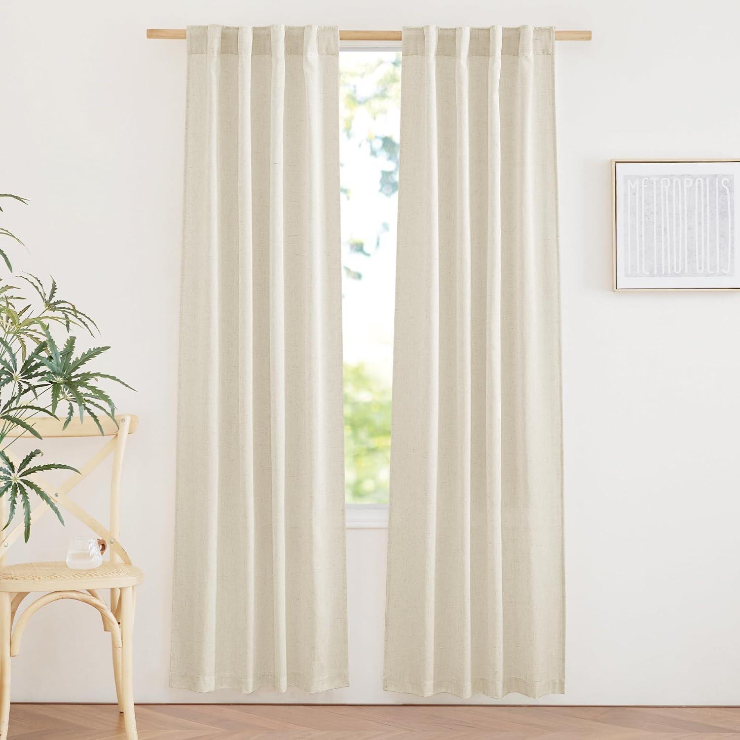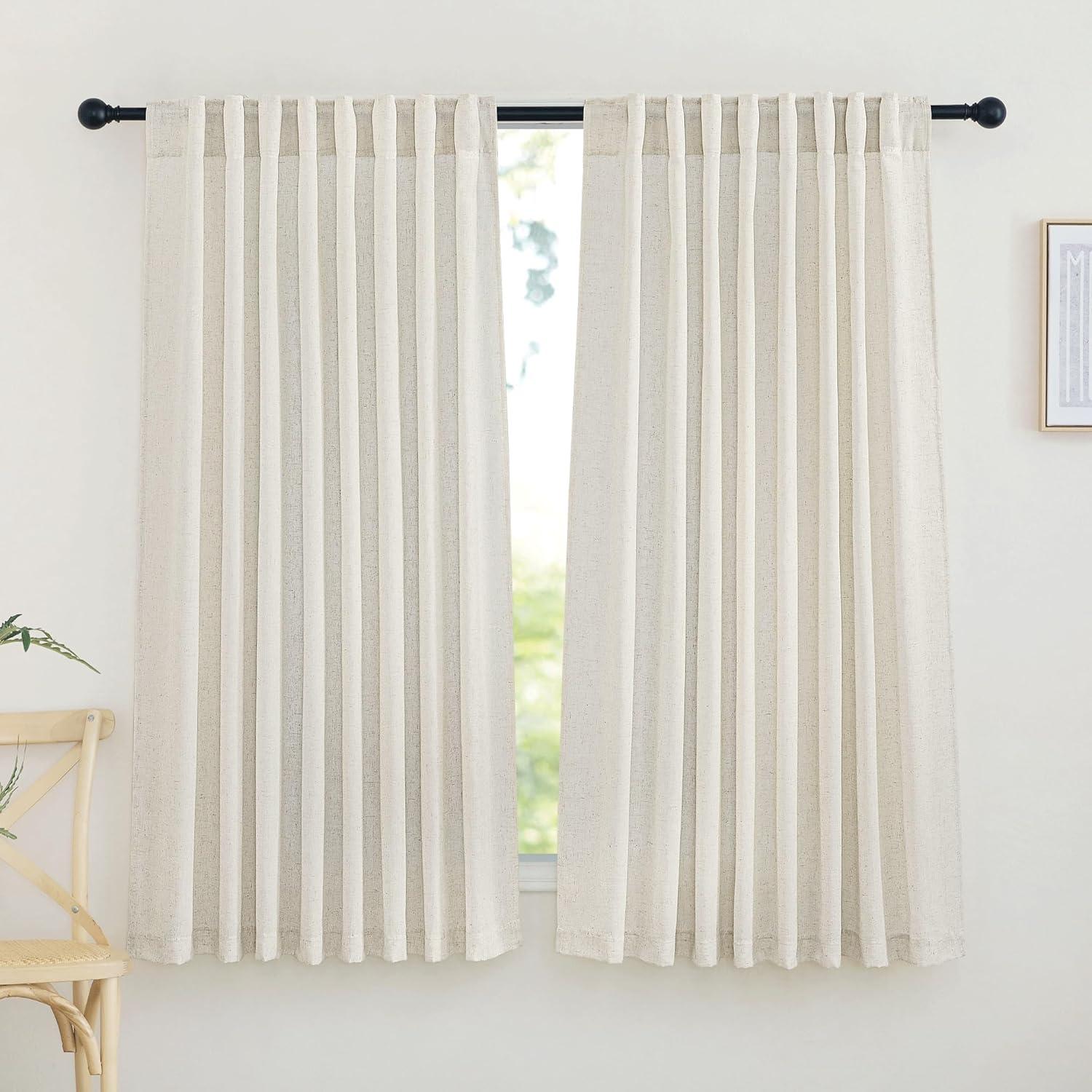 Ready-Made: The package includes 2 panels of thick flax semi-sheer linen curtains, and each measures 34″W (68″W for pair), with a rod pocket and back tab design which is 2″ inner Diam to fit most of the curtain rods.