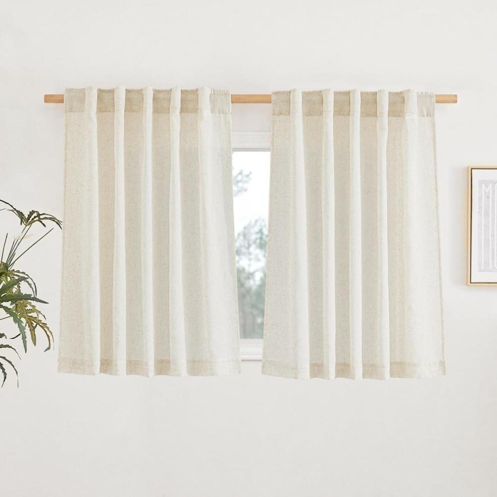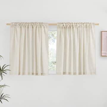 NICETOWN Natural Linen Blend Cafe Curtains 24 inch Length, Rod Pocket & Back Tab Semi Sheer Privacy Window Treatments Light Filtering for Kitchen, W42 x L24, 2 Panels(Natural)