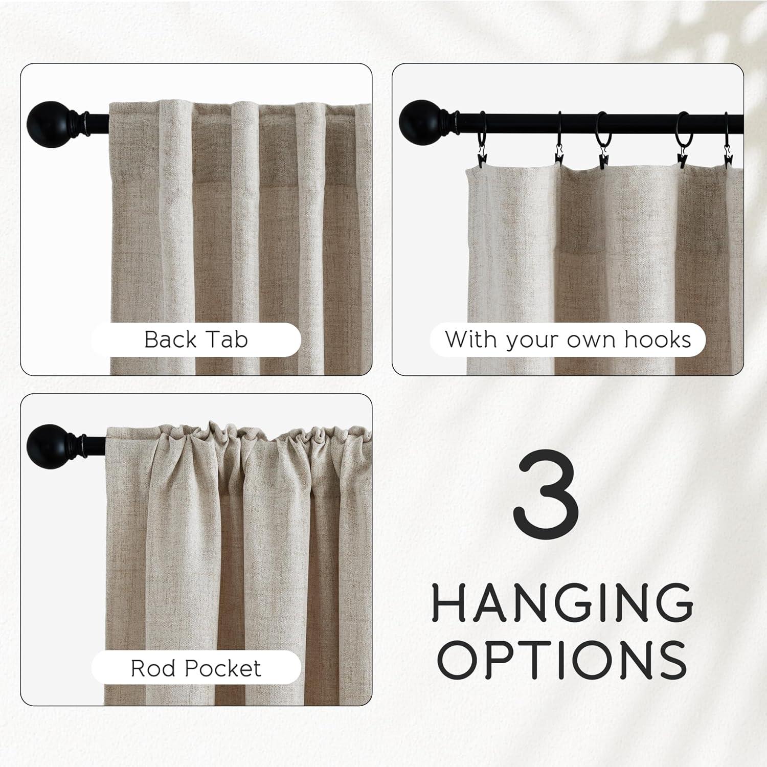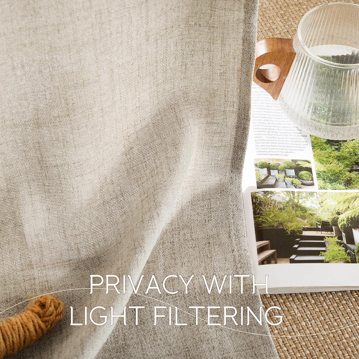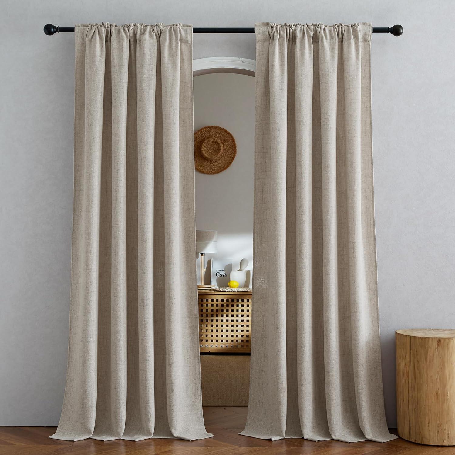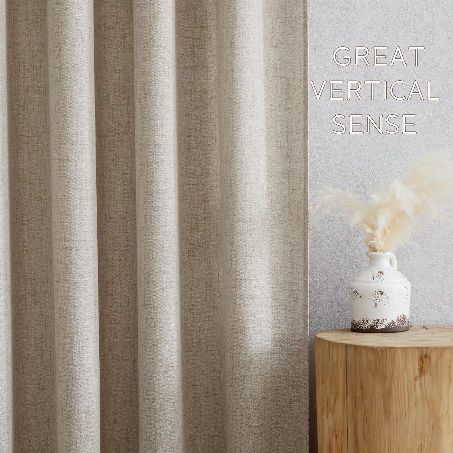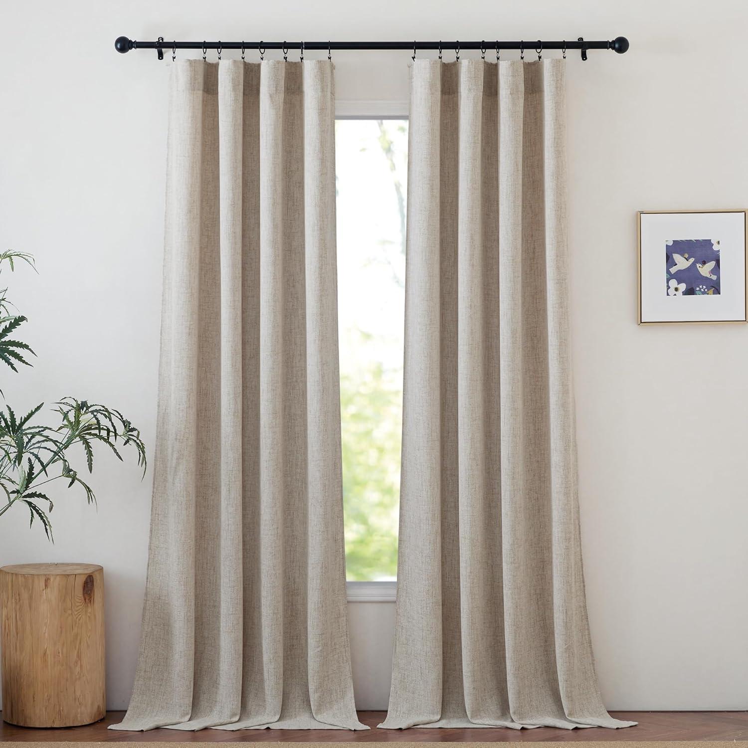 Ready-Made: The package includes 2 panels of thick flax semi-sheer linen curtains, and each measures 34″W (68″W for pair), with a rod pocket and back tab design which is 2″ inner Diam to fit most of the curtain rods.