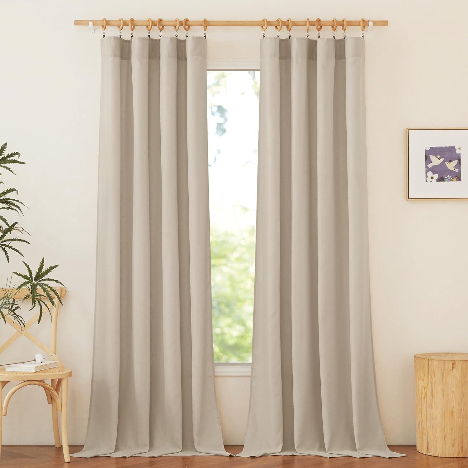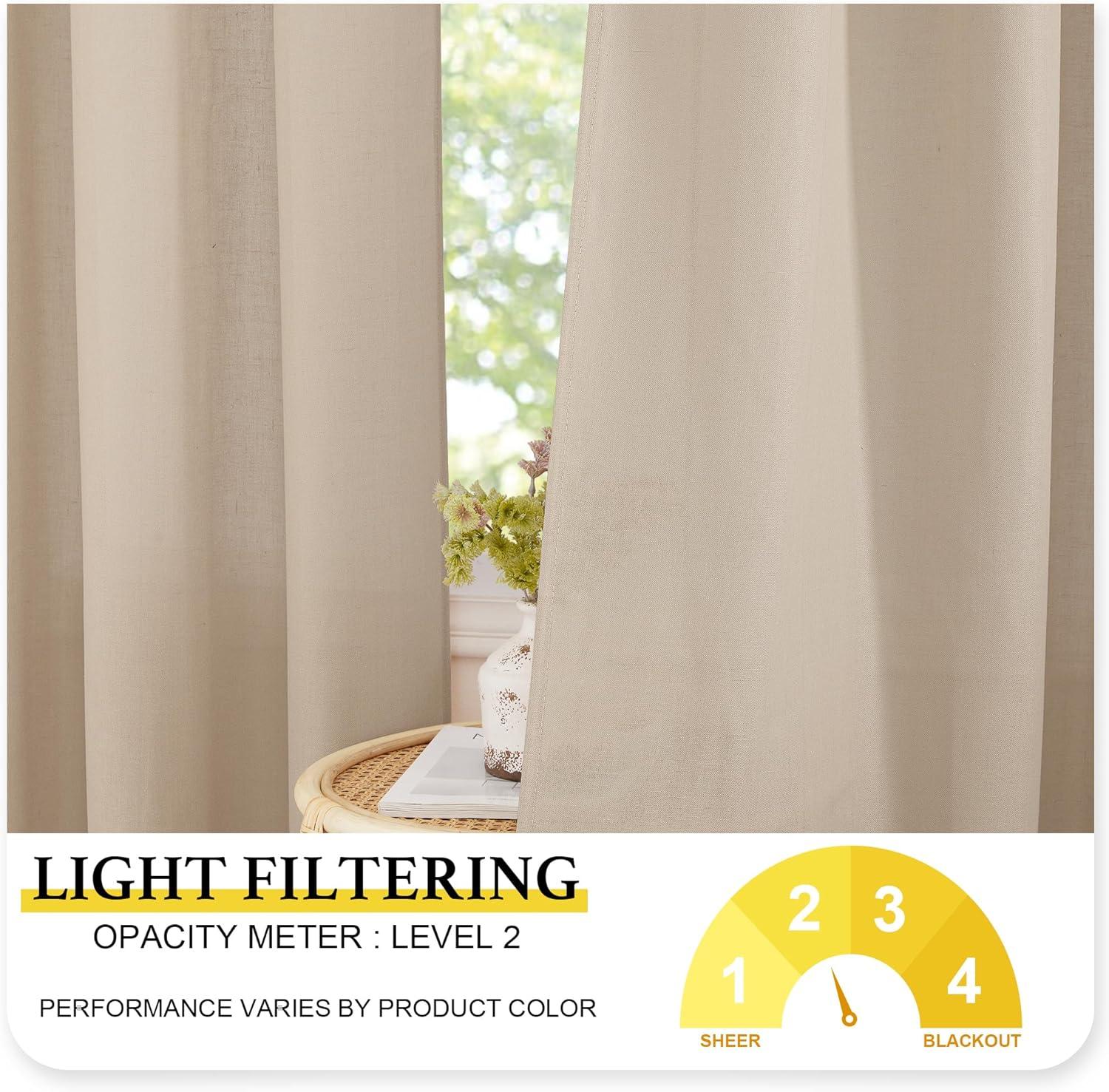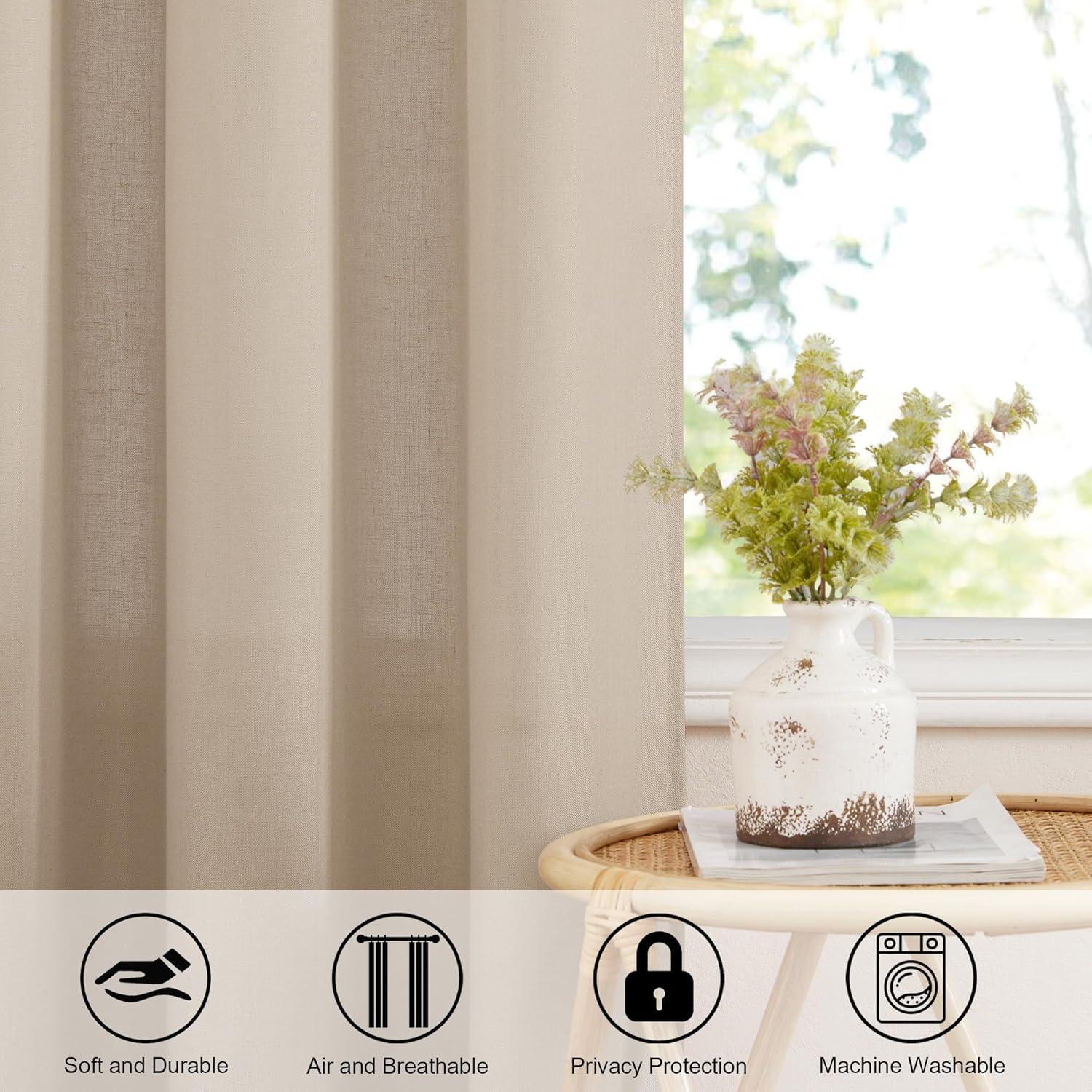 NICETOWN Natural Linen Curtains & Drapes for Windows 84 inch Long, Rod Pocket & Back Tab Thick Flax Semi Sheer Privacy Assured with Light Filtering for Bedroom/Living Room, W55 x L84, 2 Pieces(Angora)