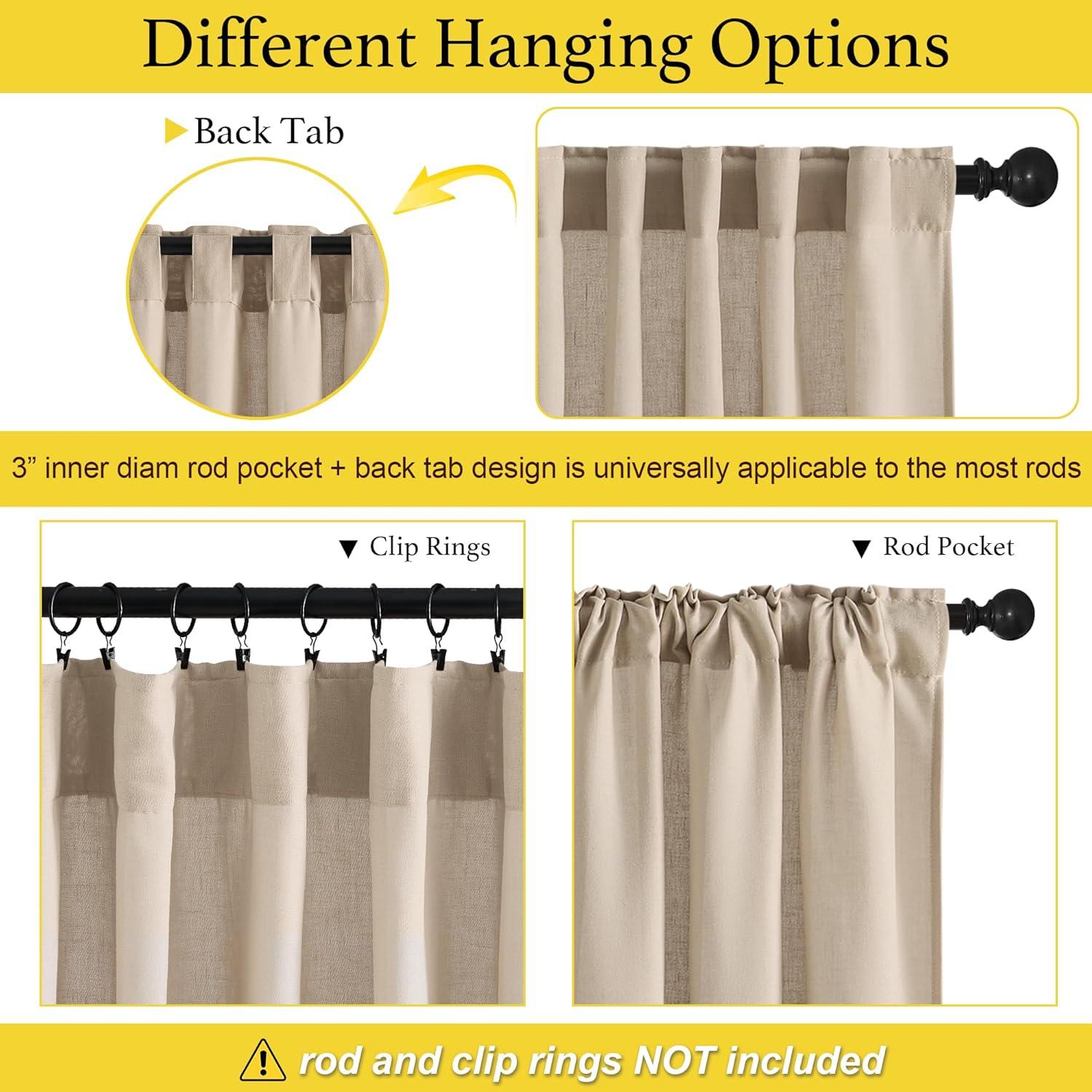 Ready-Made: The package includes 2 panels of thick flax semi-sheer linen curtains, and each measures 55″W (110″W for pair), with a rod pocket and back tab design which is 2″ inner Diam to fit most of the curtain rods.