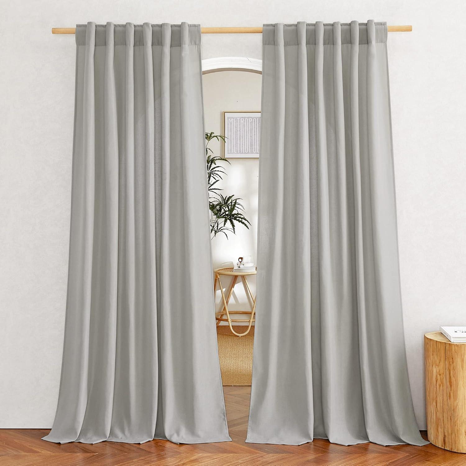 NICETOWN Natural Linen Curtains & Drapes for Windows 84 inch Long, Rod Pocket & Back Tab Thick Flax Semi Sheer Privacy Assured with Light Filtering for Bedroom/Living Room, W55 x L84, 2 Pieces(Grey)