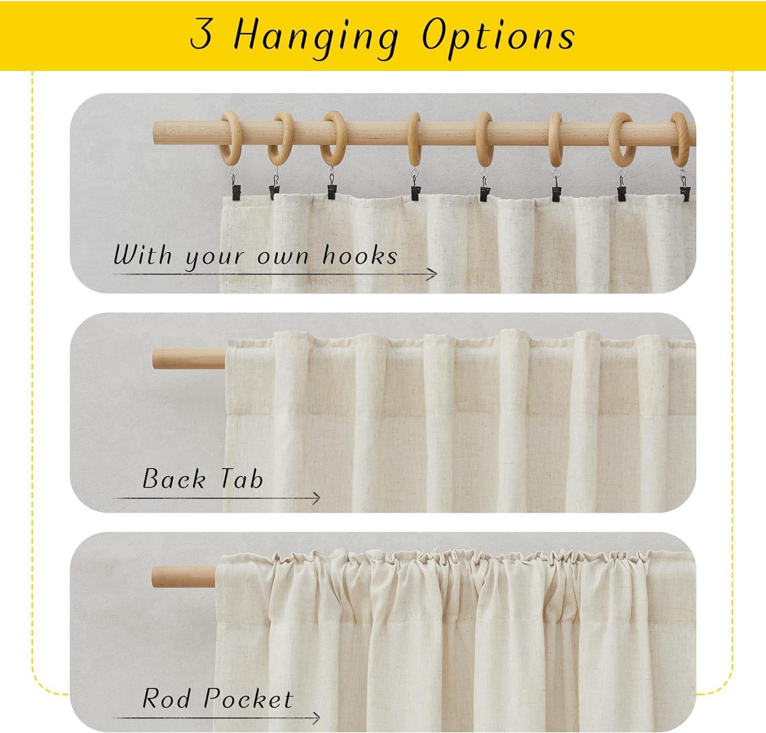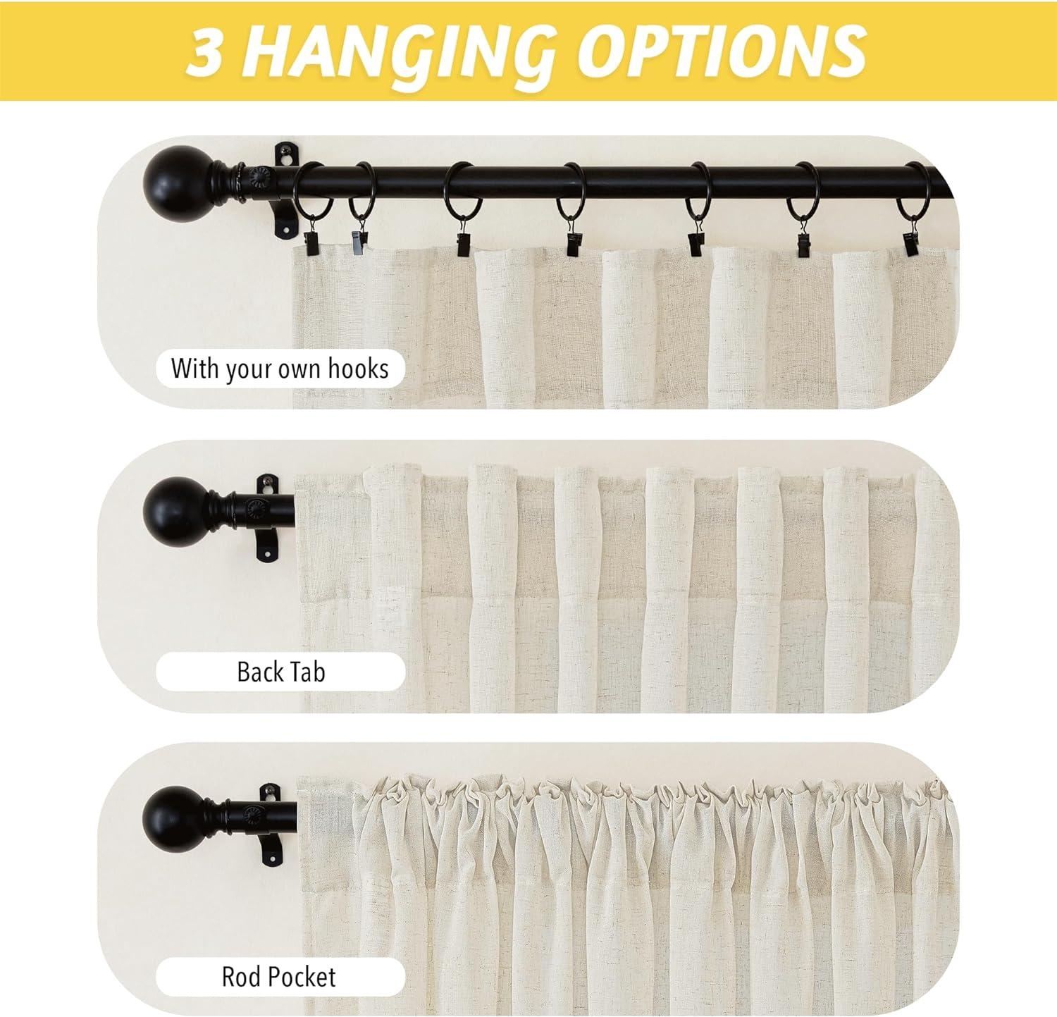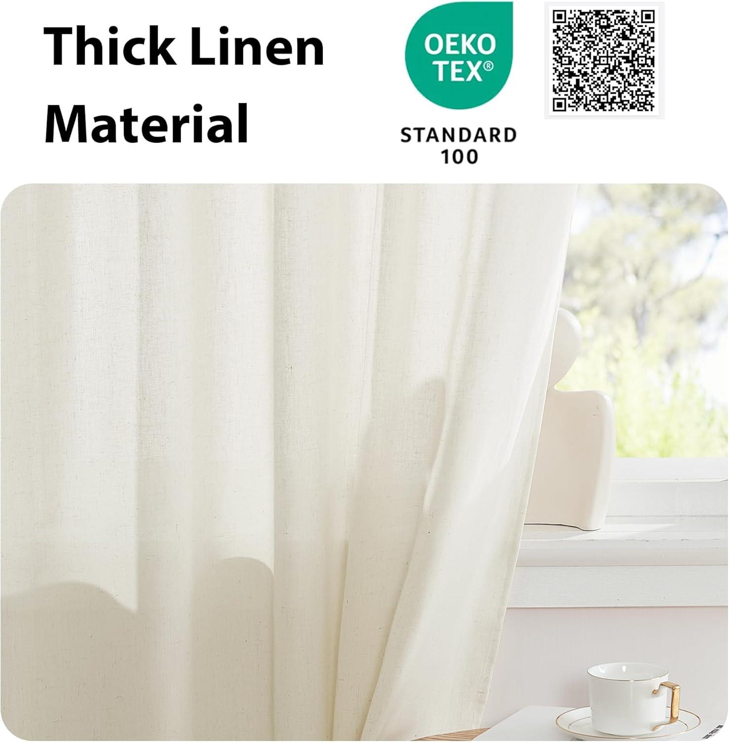 Ready-Made: The package includes 2 panels of thick flax semi-sheer linen curtains, and each measures 55″W (110″W for pair), with a rod pocket and back tab design which is 2″ inner Diam to fit most of the curtain rods.