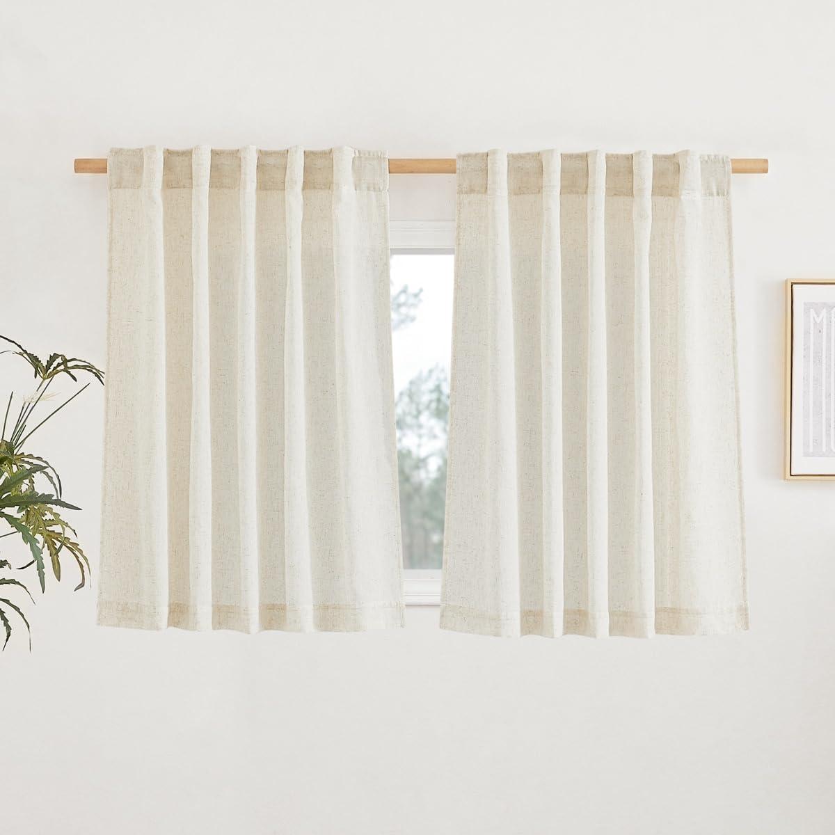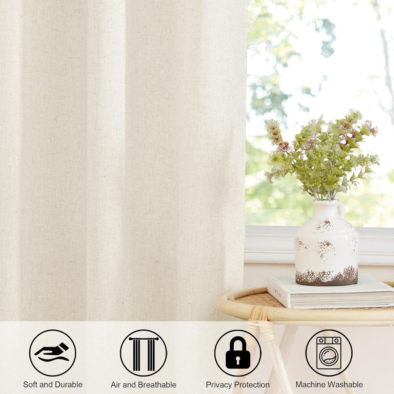 NICETOWN Natural Linen Curtains & Drapes for Windows 84 inch Long, Rod Pocket & Back Tab Thick Flax Semi Sheer Privacy Assured with Light Filtering for Bedroom/Living Room, W55 x L84, 2 Pieces(Natural)
