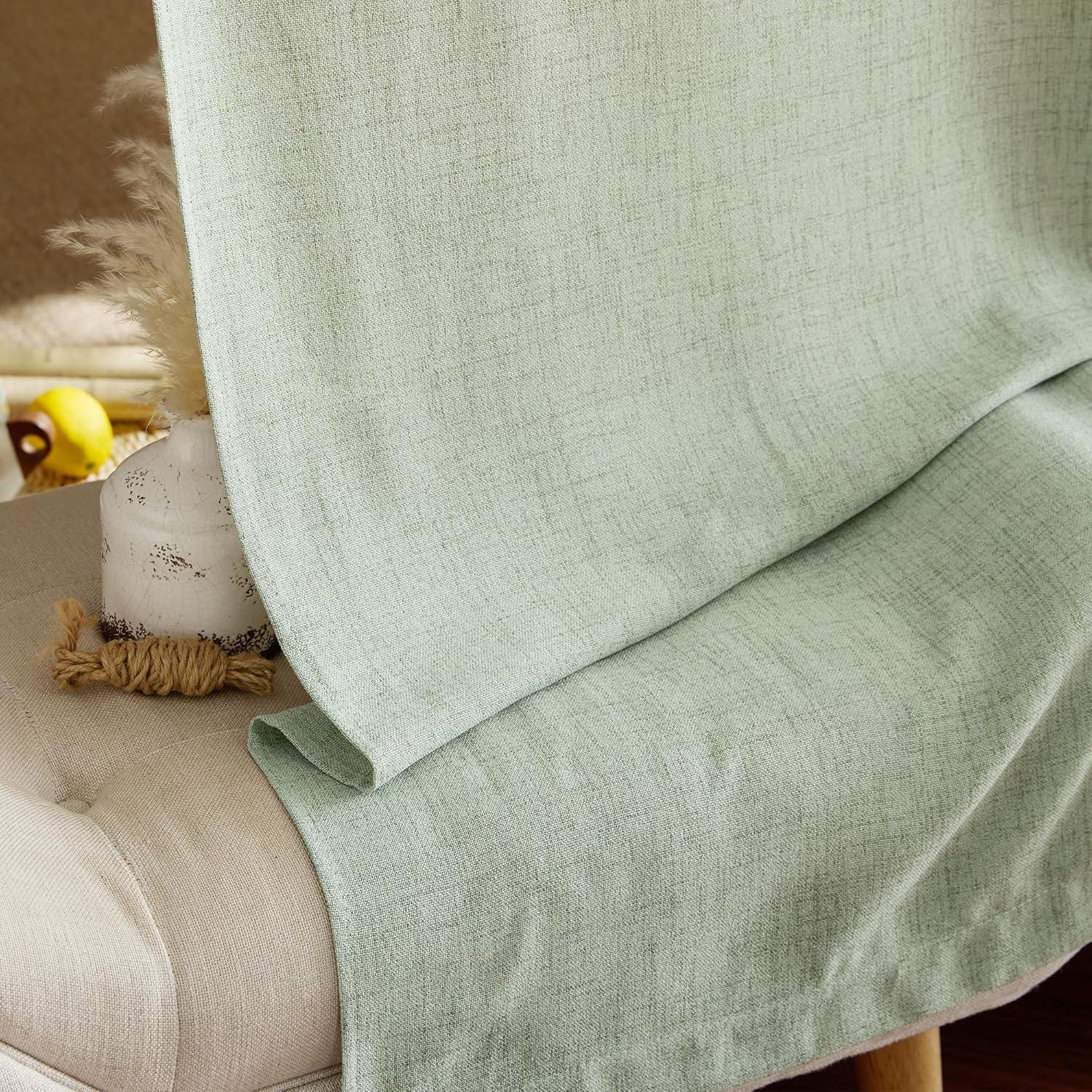 NICETOWN Natural Linen Curtains & Drapes for Windows 84 inch Long, Rod Pocket & Back Tab Thick Flax Semi Sheer Privacy Assured with Light Filtering for Bedroom/Living Room, W55 x L84, 2 Pieces(Sage Green)