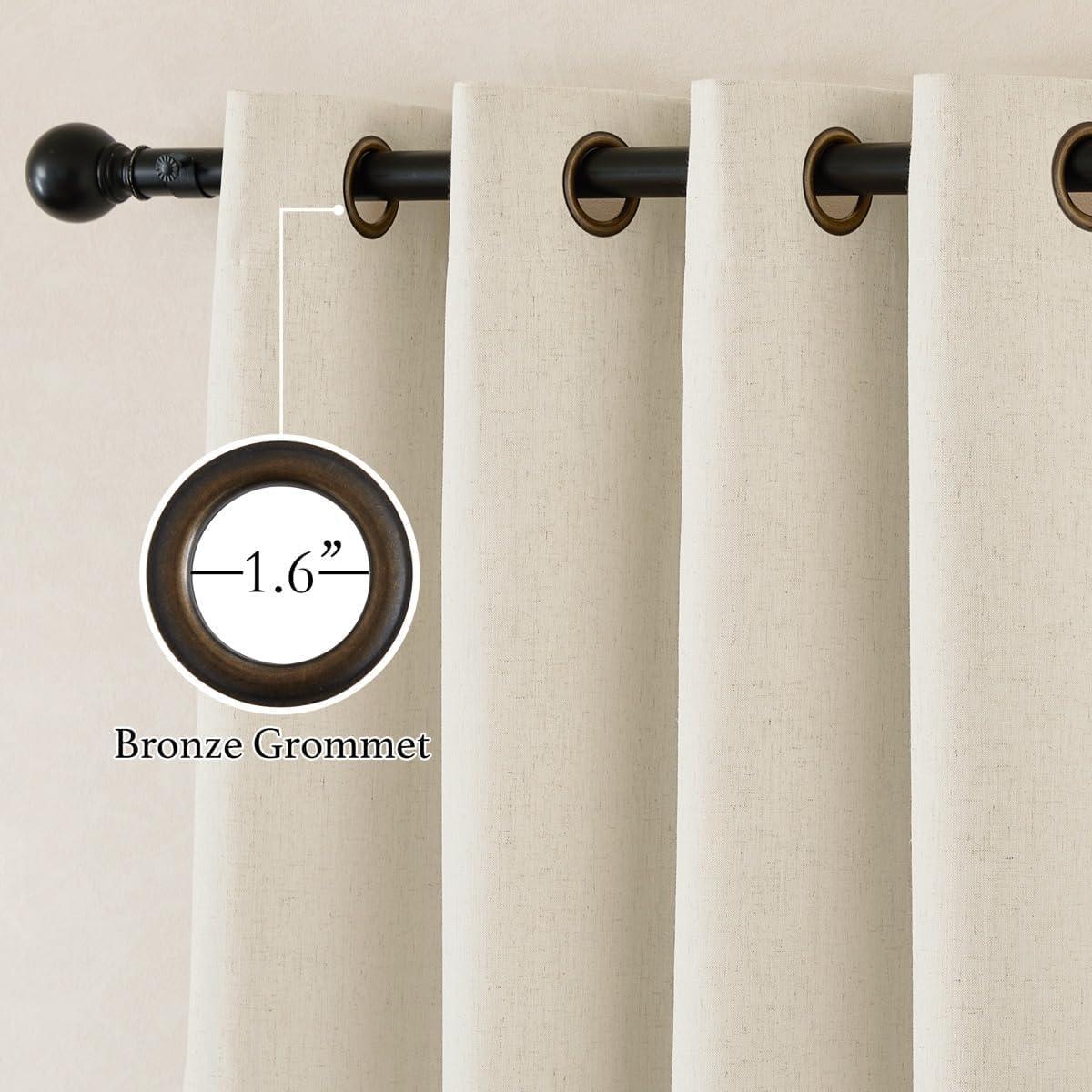 Ready Made: Package includes 2 panels of faux linen 100% blackout curtains, each measuring 52″W (104″W for pair). The upmarket bronze grommet (1.6-inch inner diameter) will suit most of the standard or decorative curtain rods.