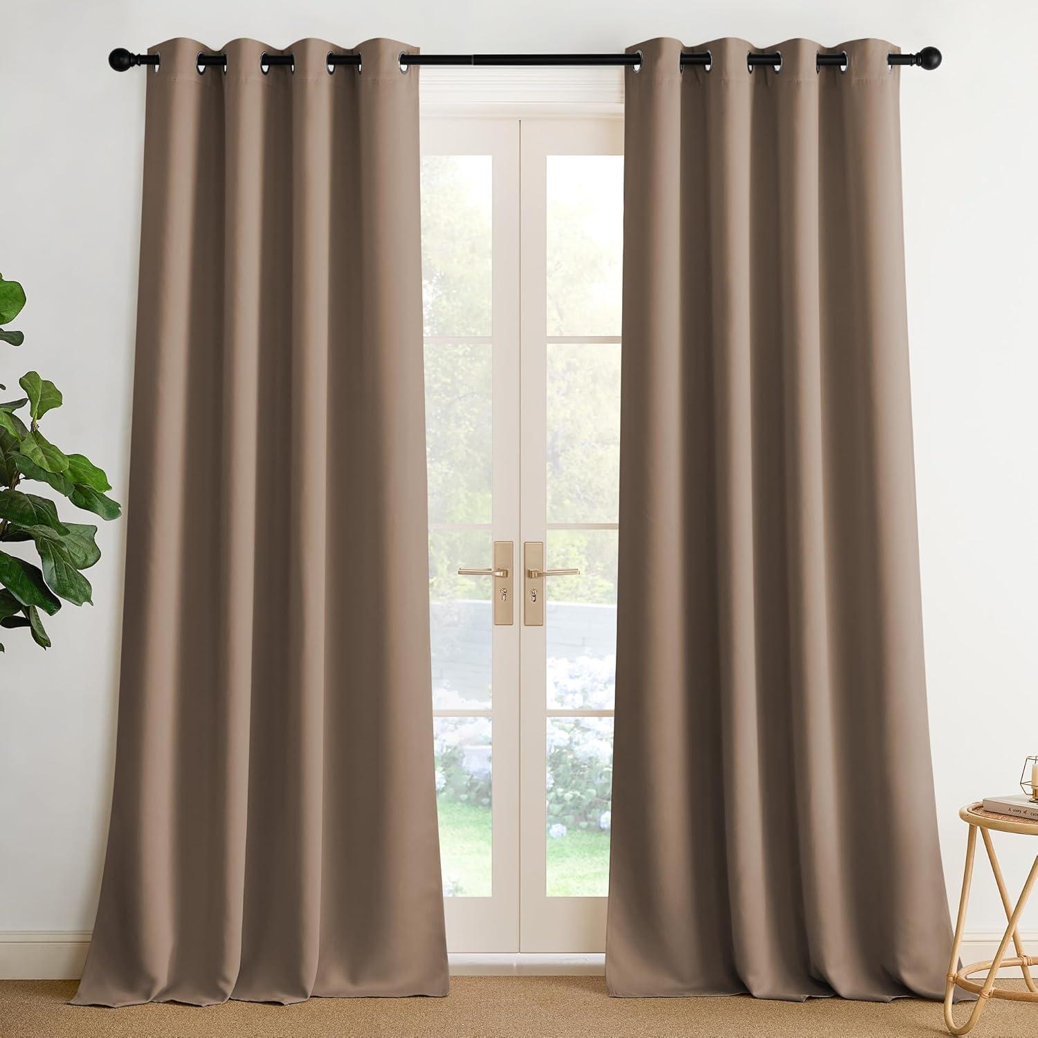NICETOWN Navy Blue Blackout Panels 63 Inches Long – Grommet Thermal Insulated Shades for Living Room, Yard, Kid’s Room, Laundry, Pantry – 1 Pair, W52 x L63(Cappuccino)