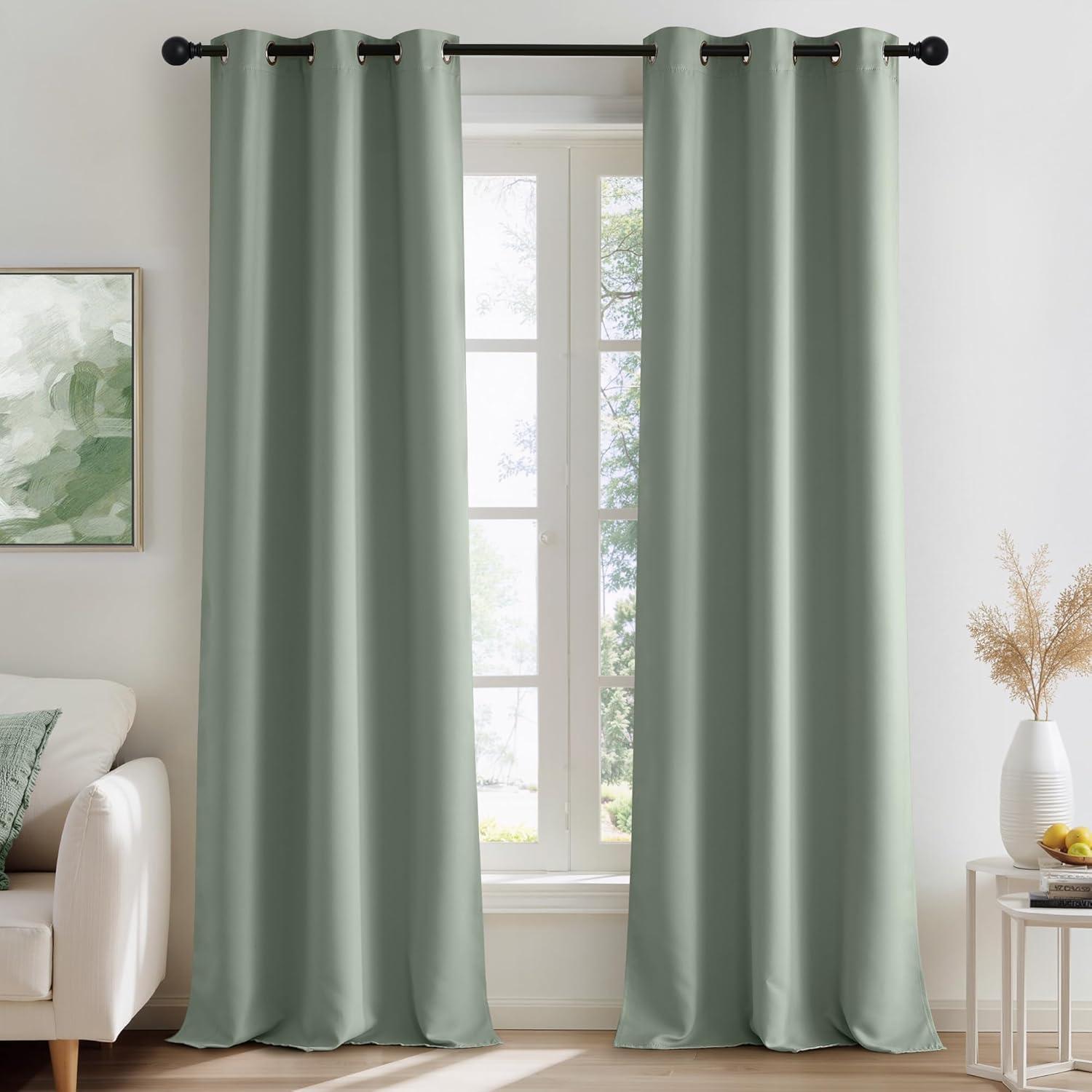 NICETOWN Navy Blue Blackout Panels 63 Inches Long – Grommet Thermal Insulated Shades for Living Room, Yard, Kid’s Room, Laundry, Pantry – 1 Pair, W52 x L63(Sage Green)