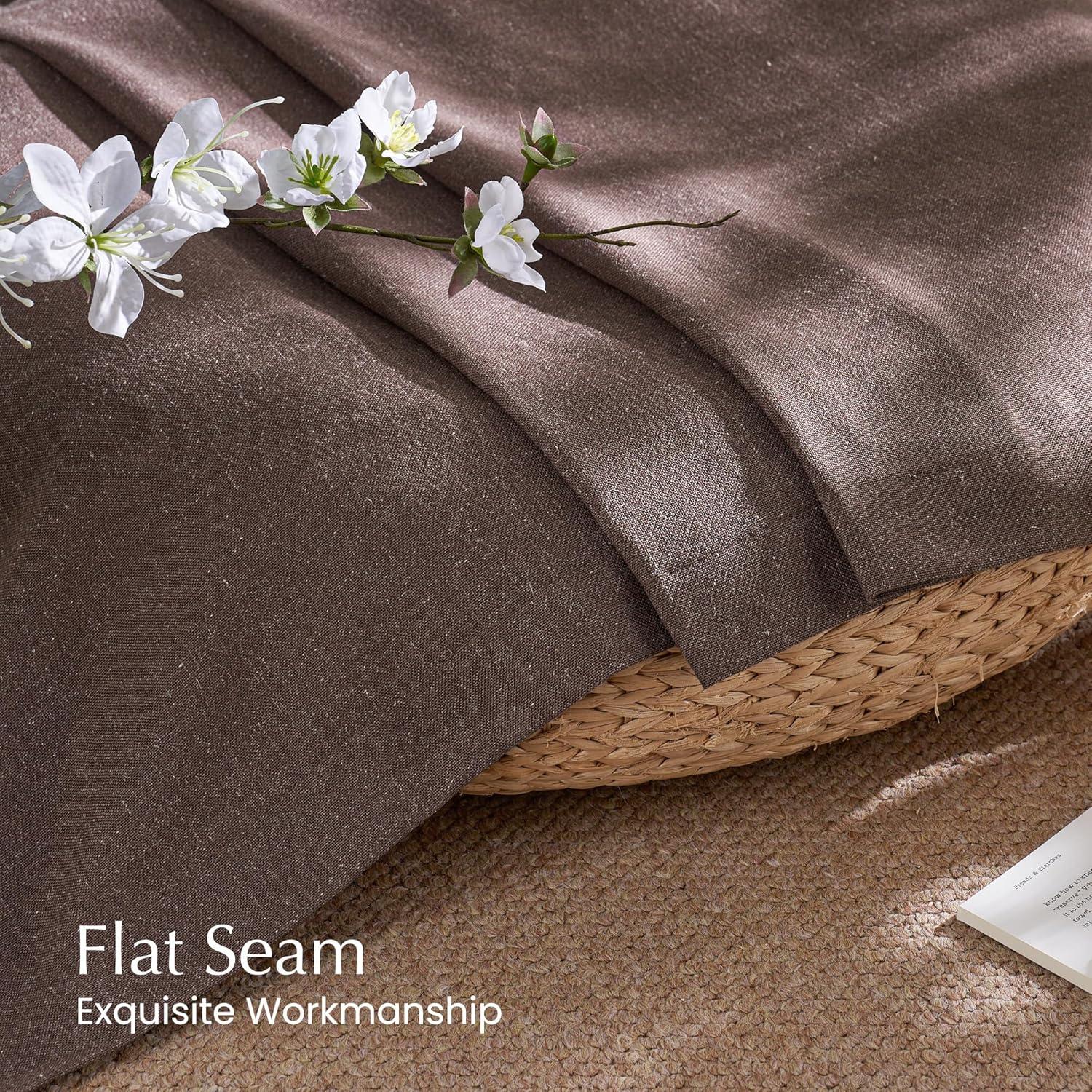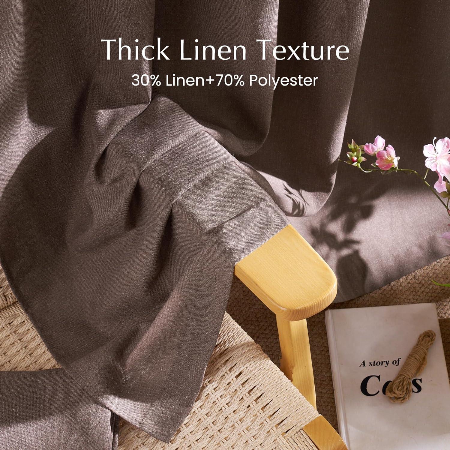 NICETOWN Navy Blue Linen Blend Living Room Curtains, Rod Pocket & Back Tab Privacy Added Thick Linen Weave with Light Filtering Window Treatments for Bedroom, W55 x L102, 2 Panels(Brown)