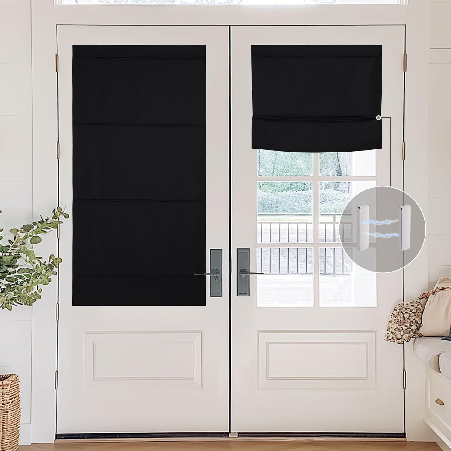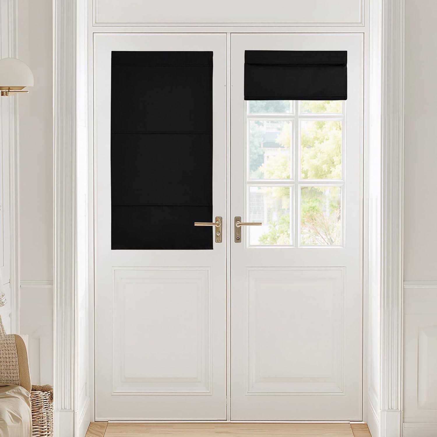 NICETOWN No Drill Roman Shadeo No Tools Door Blinds for Side Door, Privacy Thermal Insulation Magnetic Window Curtains for French Front, 1 Panel, 22″ W x 64″ L, Biscotti Beige(Black)