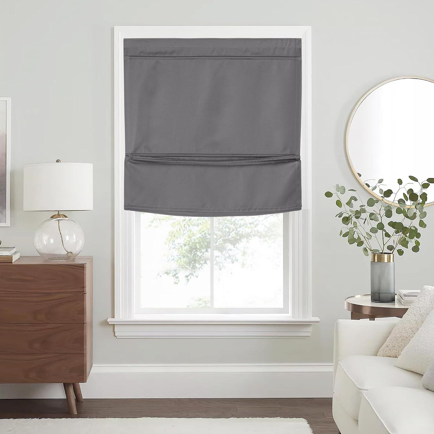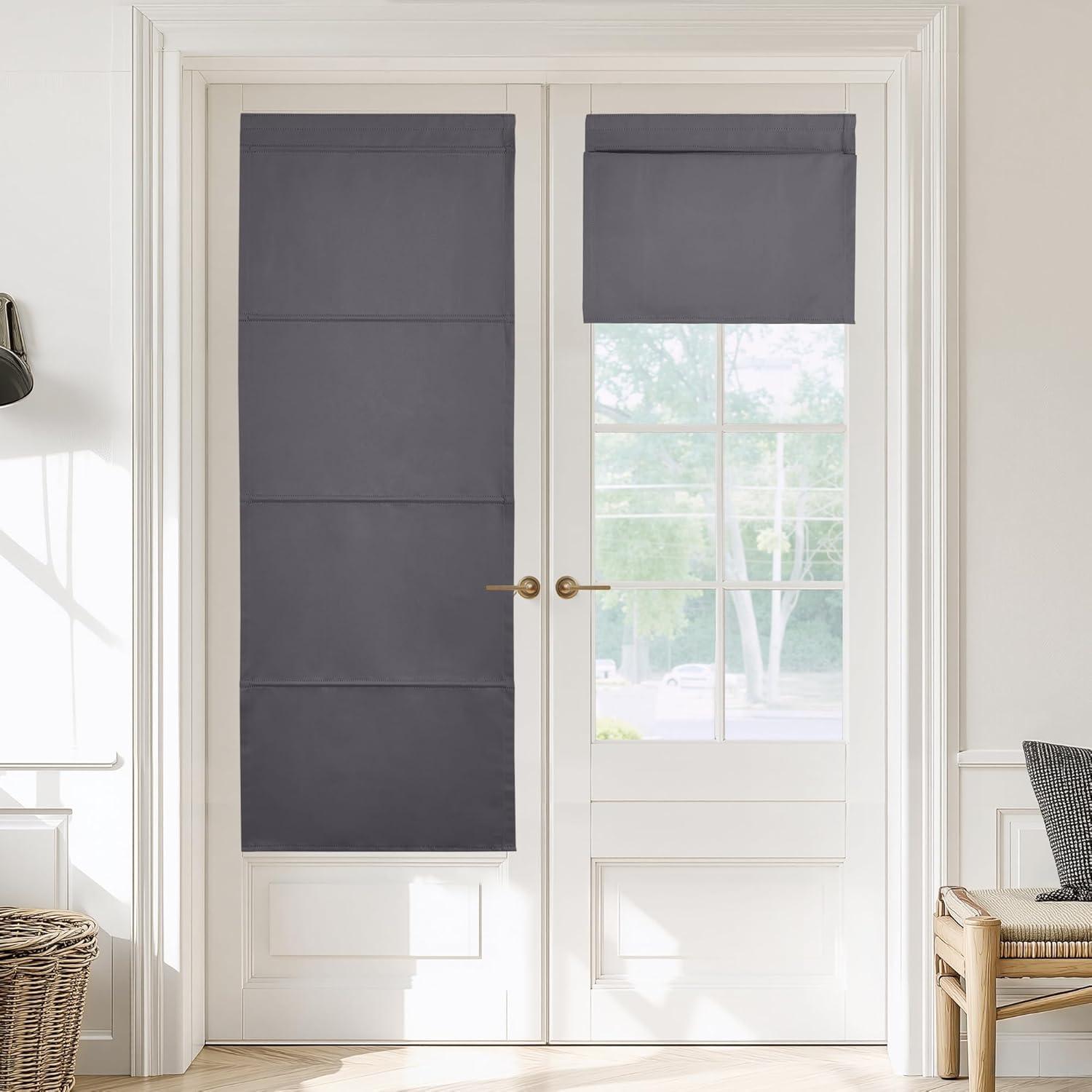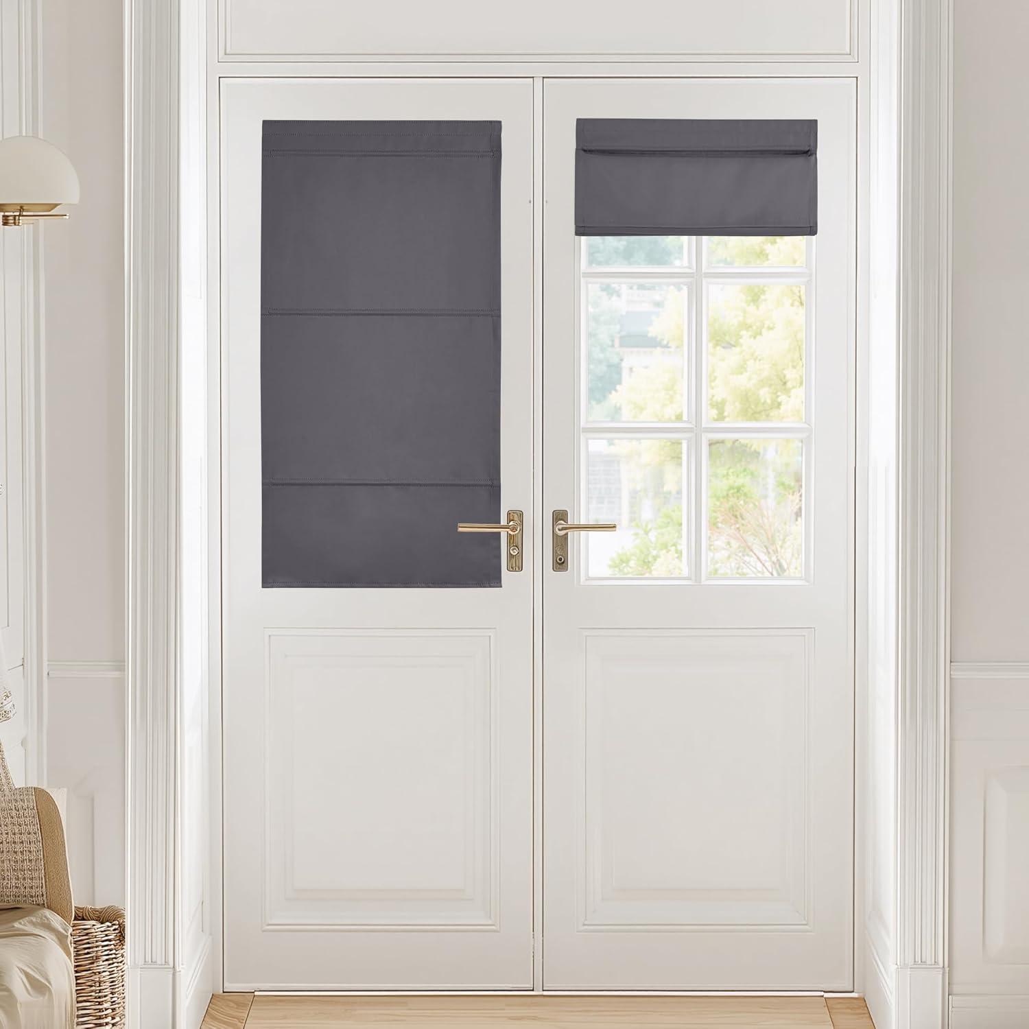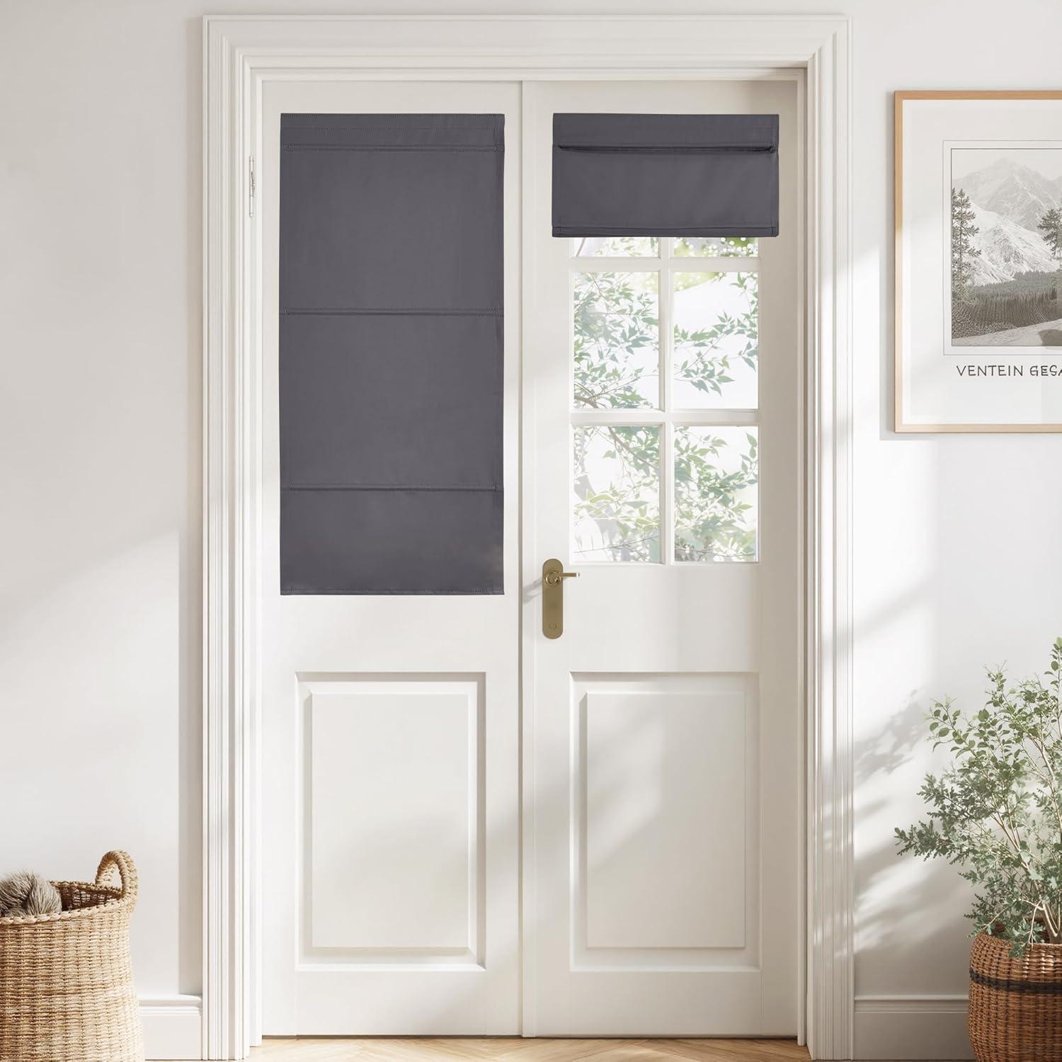NICETOWN No Drill Roman Shadeo No Tools Door Blinds for Side Door, Privacy Thermal Insulation Magnetic Window Curtains for French Front, 1 Panel, 22″ W x 64″ L, Biscotti Beige(Grey)