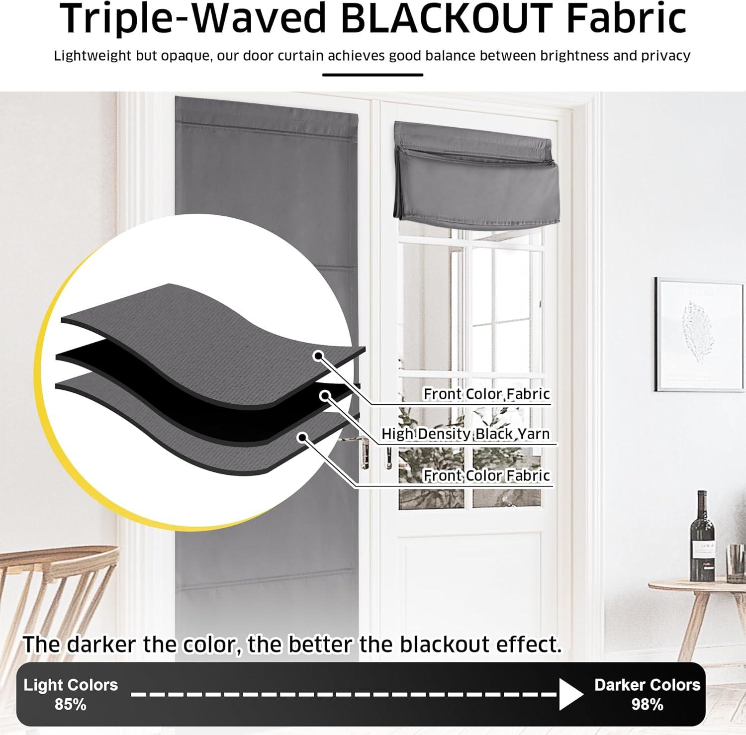 Premium Material: Benefit from the triple weave innovative technology, the curtain can blackout 70%-80% of sunlight and harmful UV rays, ensure privacy and create an energy-saving insulating barrier against heat and cold.