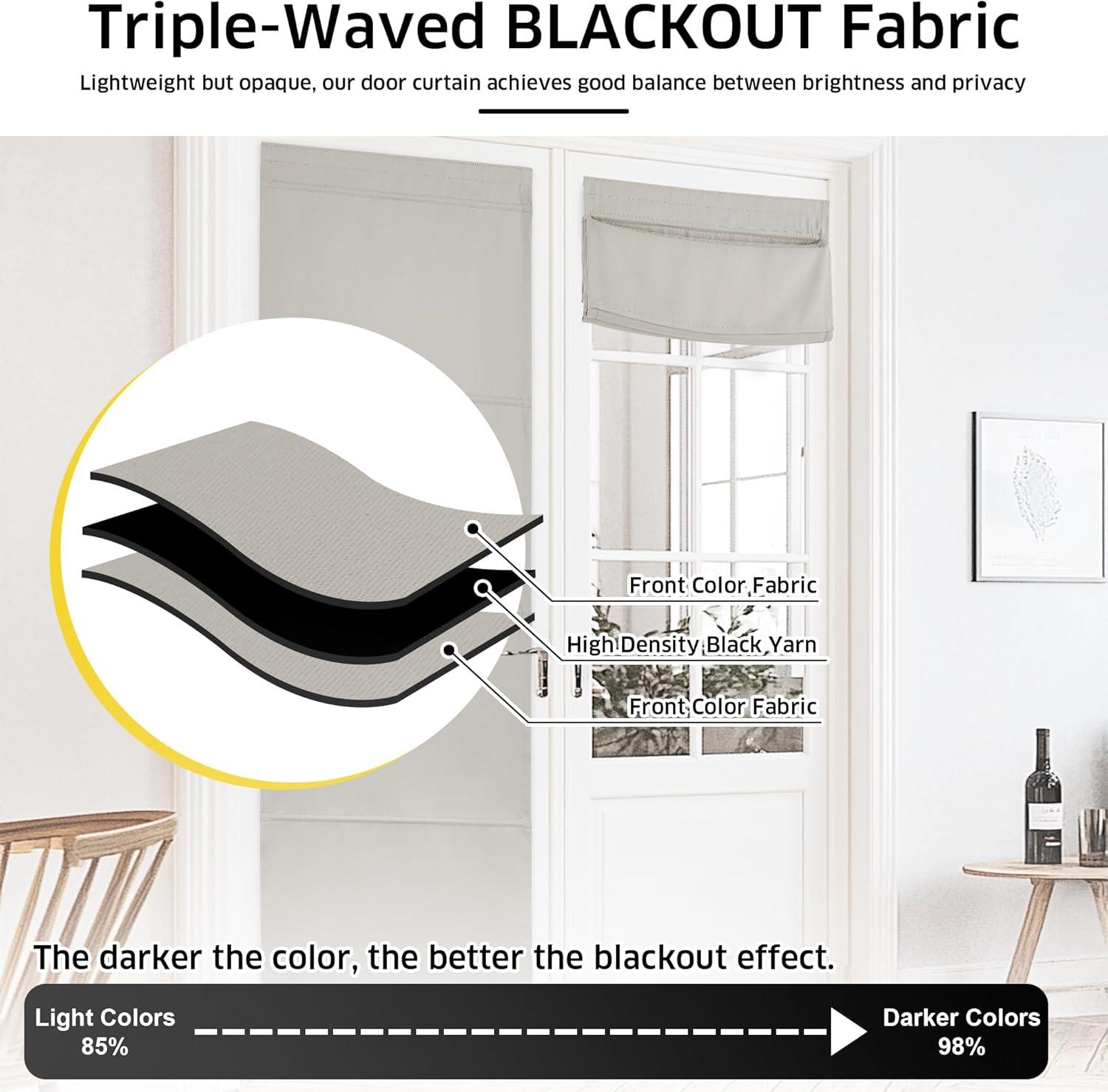 Premium Material: Benefit from the triple weave innovative technology, the curtain can blackout 70%-80% of sunlight and harmful UV rays, ensure privacy and create an energy-saving insulating barrier against heat and cold.