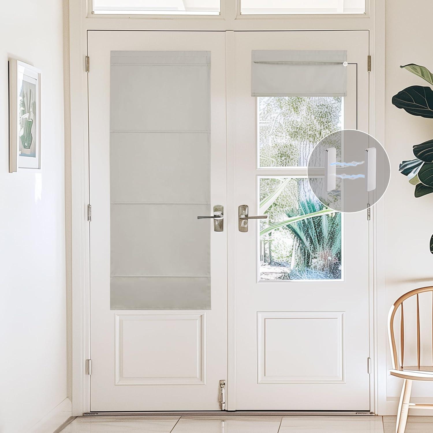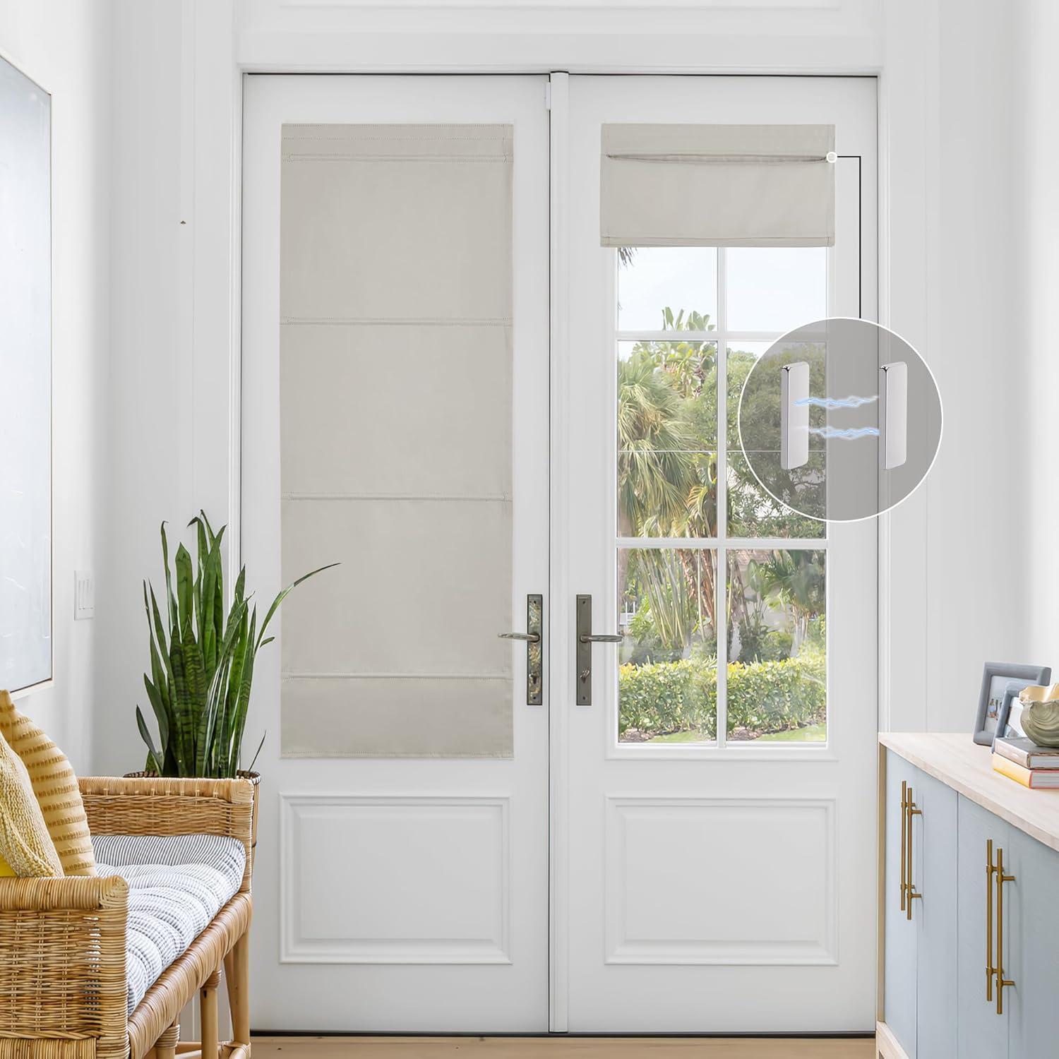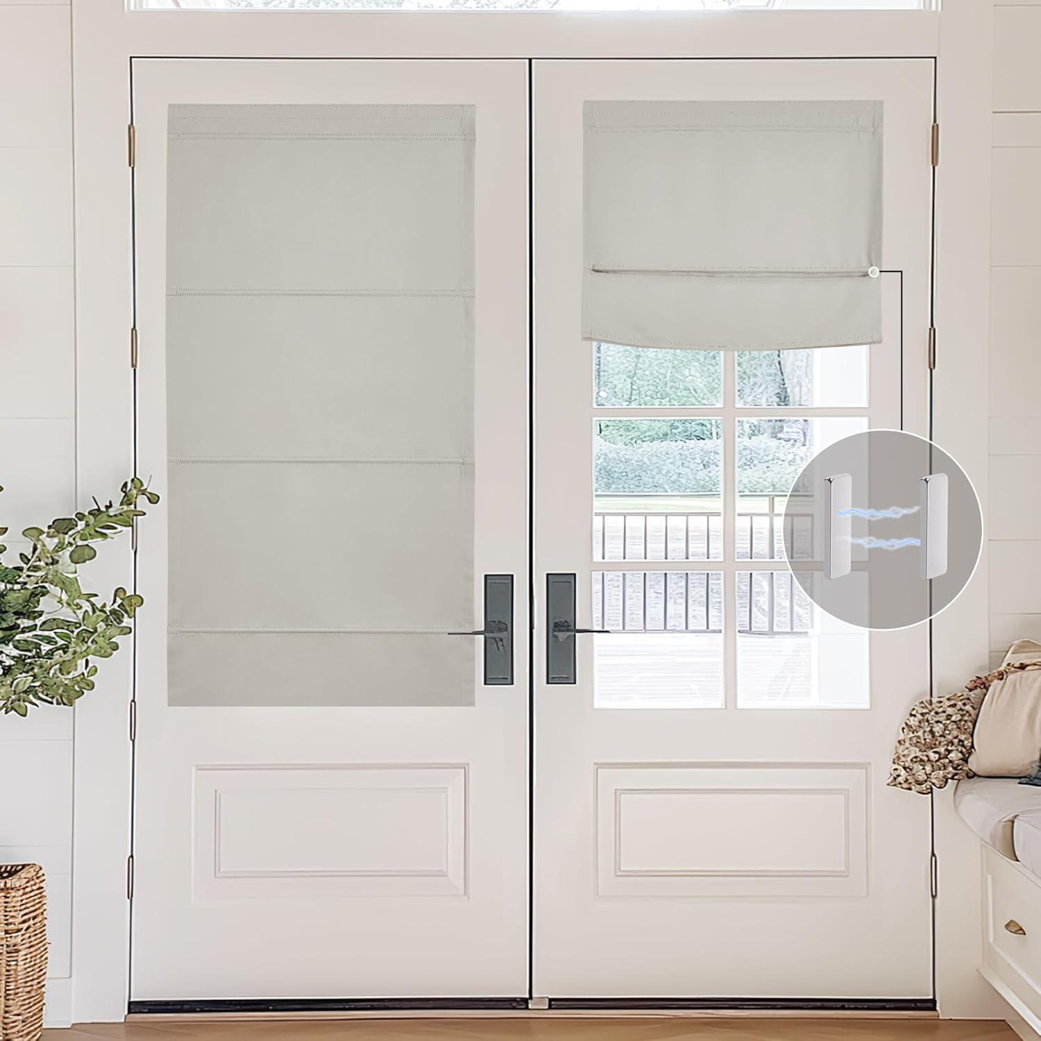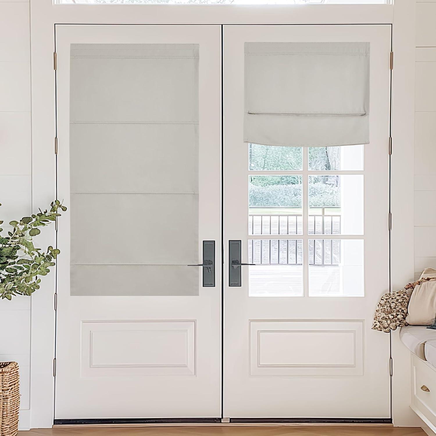 NICETOWN No Drill Roman Shadeo No Tools Door Blinds for Side Door, Privacy Thermal Insulation Magnetic Window Curtains for French Front, 1 Panel, 22″ W x 64″ L, Biscotti Beige(Natural)
