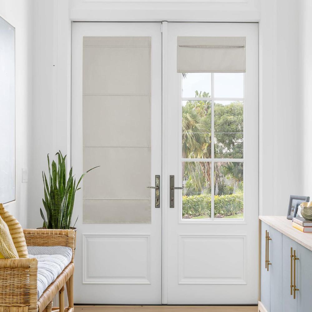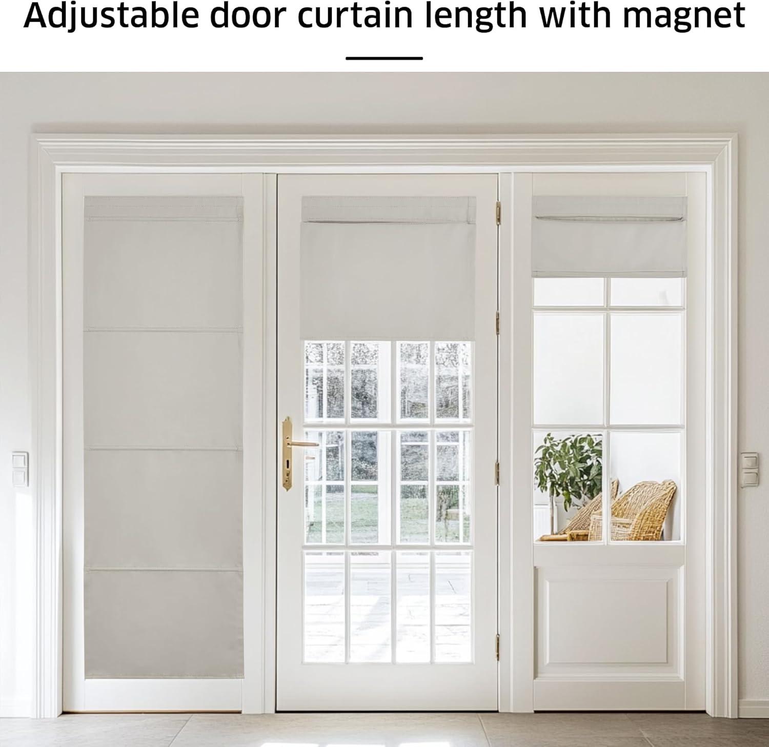 imageNICETOWN No Drill Roman Shadeo No Tools Door Blinds for Side Door Privacy Thermal Insulation Magnetic Window Curtains for French Front 1 Panel 22quot W x 64quot L Biscotti BeigeMagnetic  Pure White