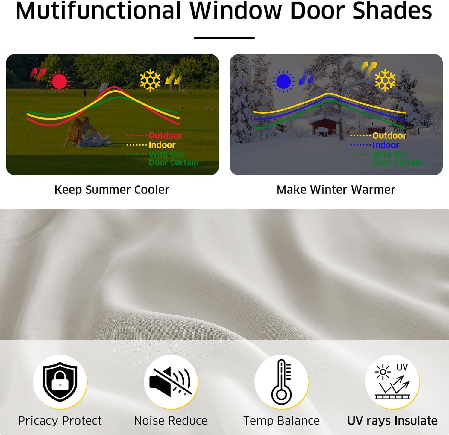 Energy Efficient: These glass door curtains not only protect furniture and floor exposed to the sun, but also balance room temperature. They insulate from the summer heat.
