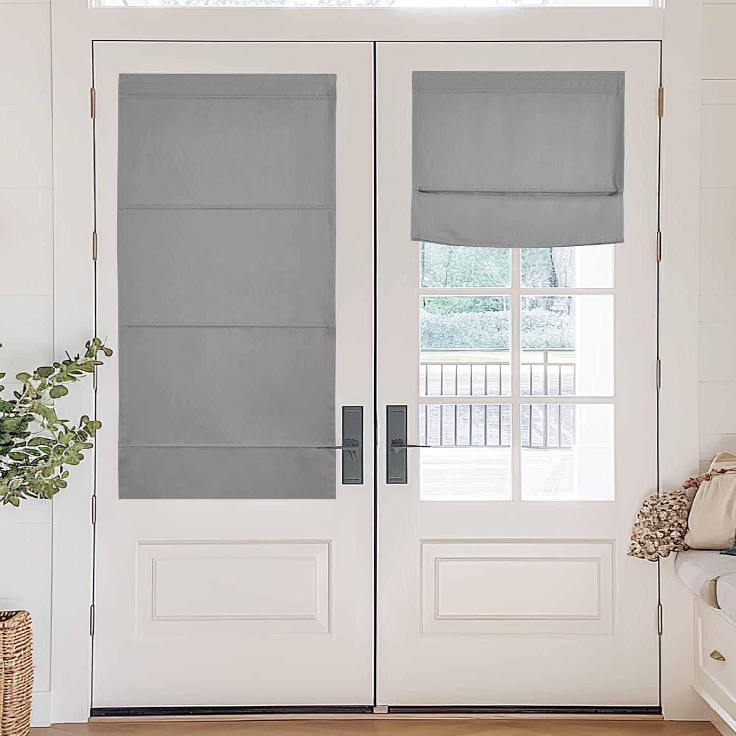 NICETOWN No Drill Roman Shadeo No Tools Door Blinds for Side Door, Privacy Thermal Insulation Magnetic Window Curtains for French Front, 1 Panel, 22″ W x 64″ L, Biscotti Beige(Silver Grey)