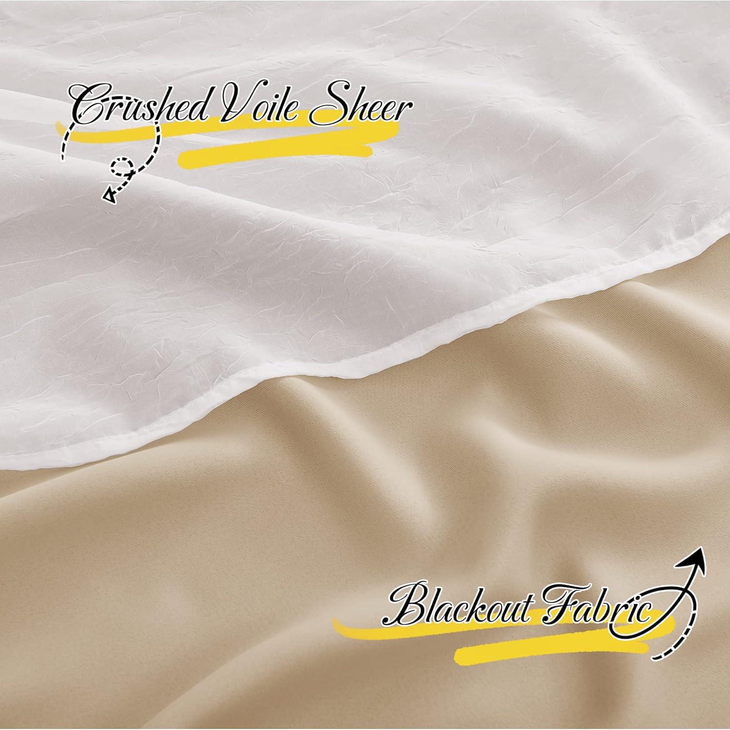 ELEGANT STYLISH: Innovative blackout fabric provides maximum privacy while a crinkled sheer panel brings an airy look. Both layers come with a tie back for different styling.