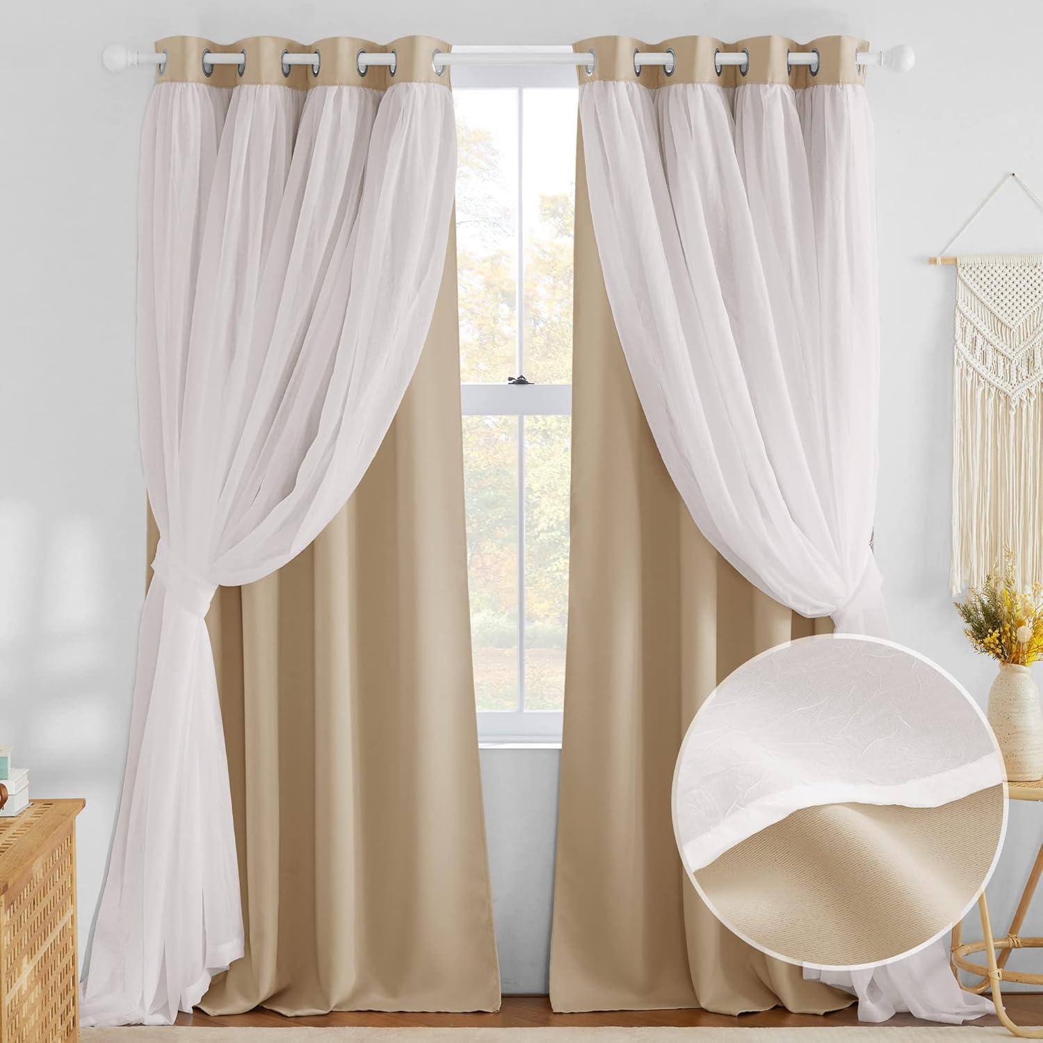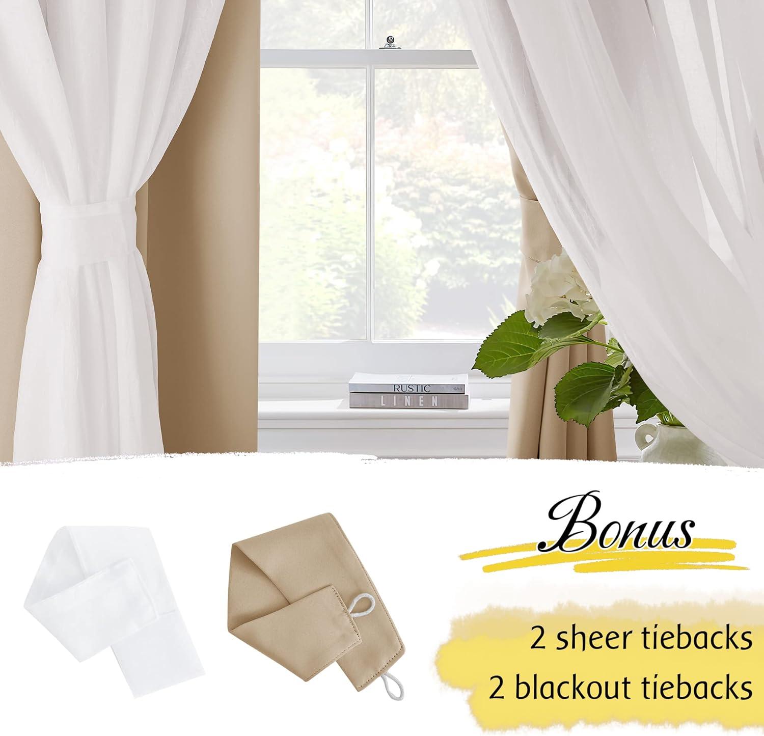NICETOWN Nursery Blackout Curtains for Bedroom Living Room Crushed Sheer x Blackout Curtains 84 inches Long Farmhouse Curtains with Tie Backs for Kids (2 PCs, W52 x L84 inch, Biscotti Beige)(Biscotti Beige & White)