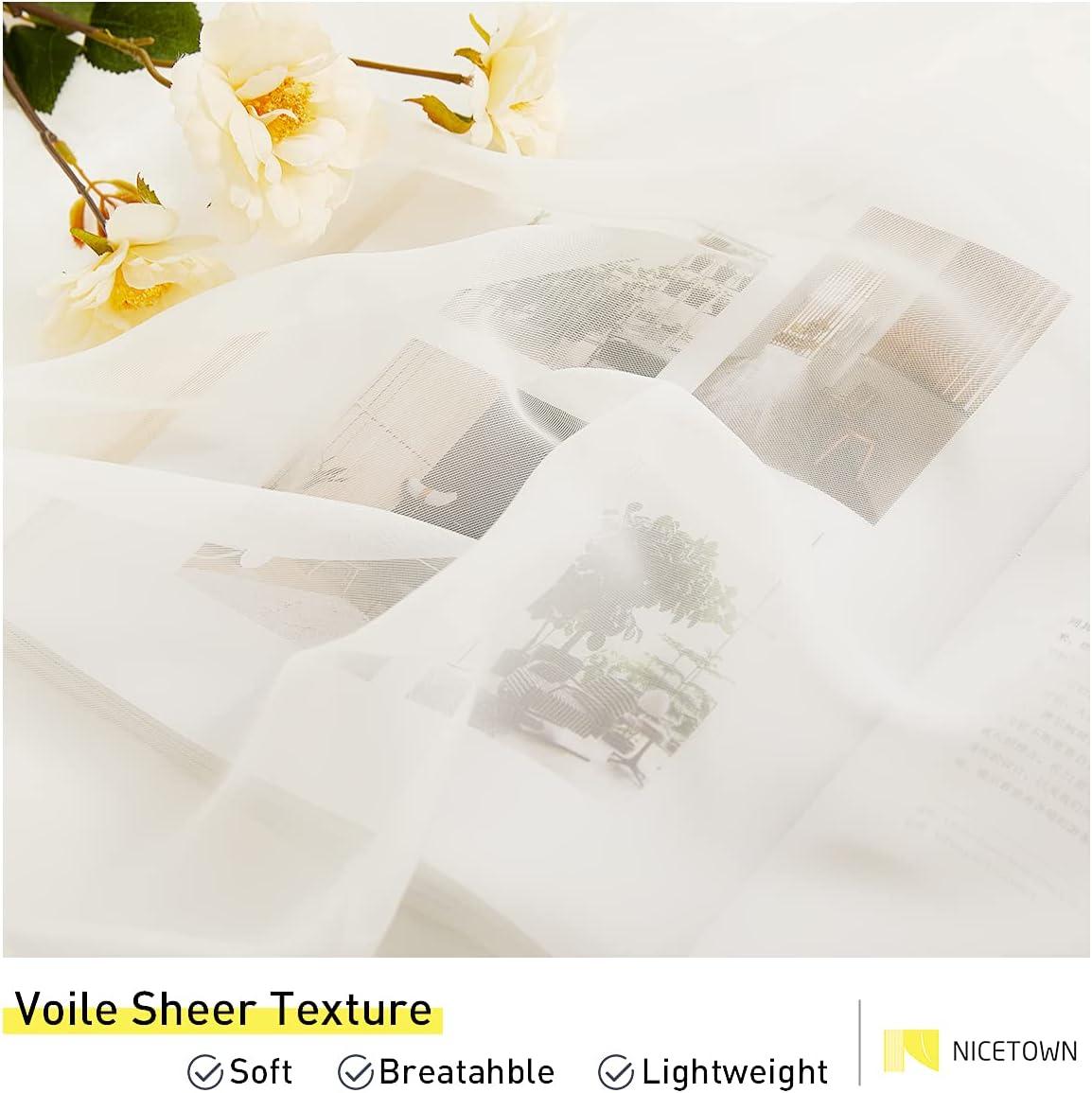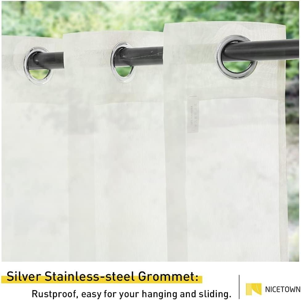 NICETOWN Outdoor Sheer Curtains 84 inches Long 2 Panels, Waterproof Sheer Texture Curtain Panels for Gazebo, Porch, Pergola, Voile Drapes with Rustproof Grommets for Living Room, W54 x L84 inch, White(Beige)
