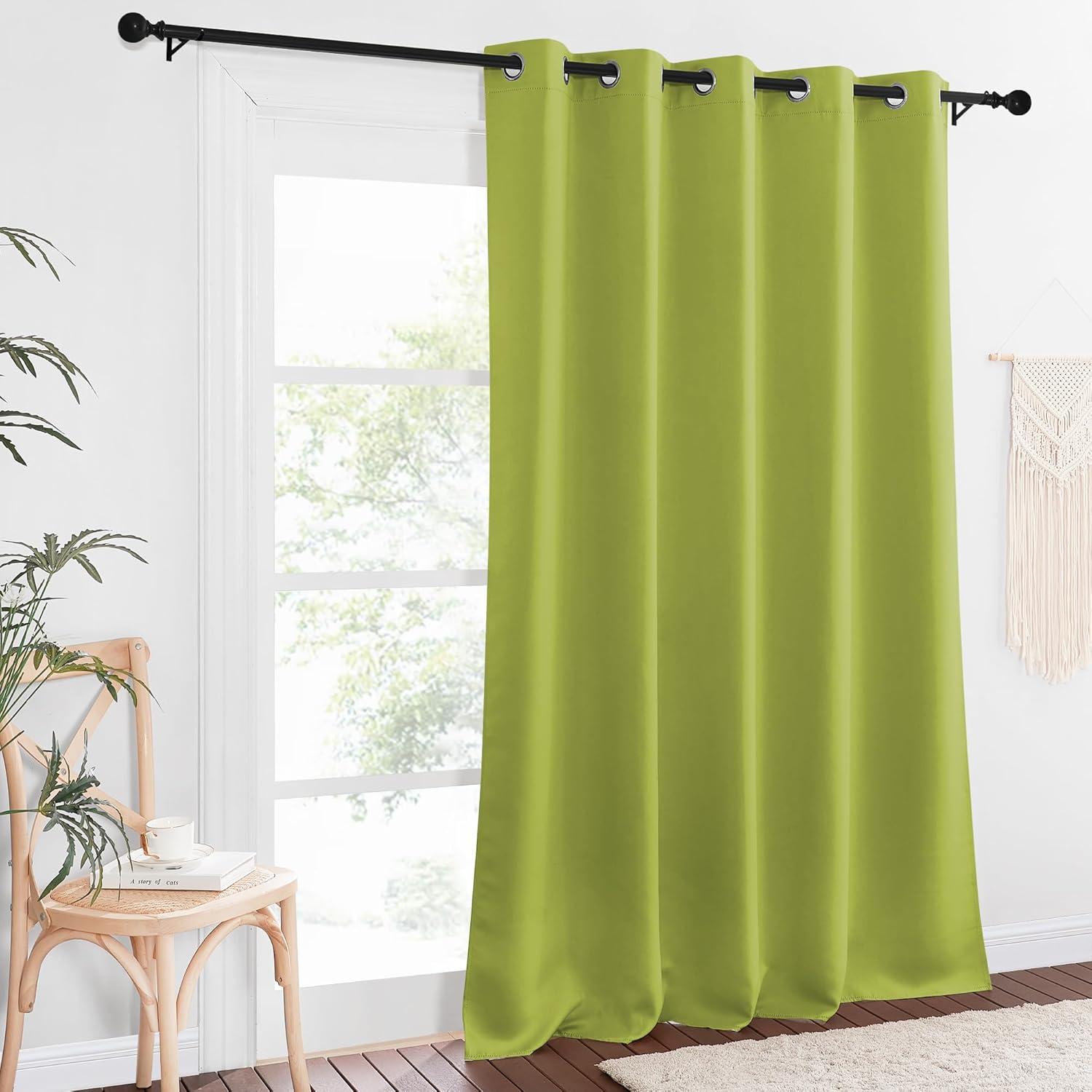NICETOWN Patio Blackout Curtain Panels – Extra Wide Sliding Door Thermal Insulated Drape, Privacy Room Divider Curtain for Bedroom Office (Fresh Green, 66 x 118 Inch Long)