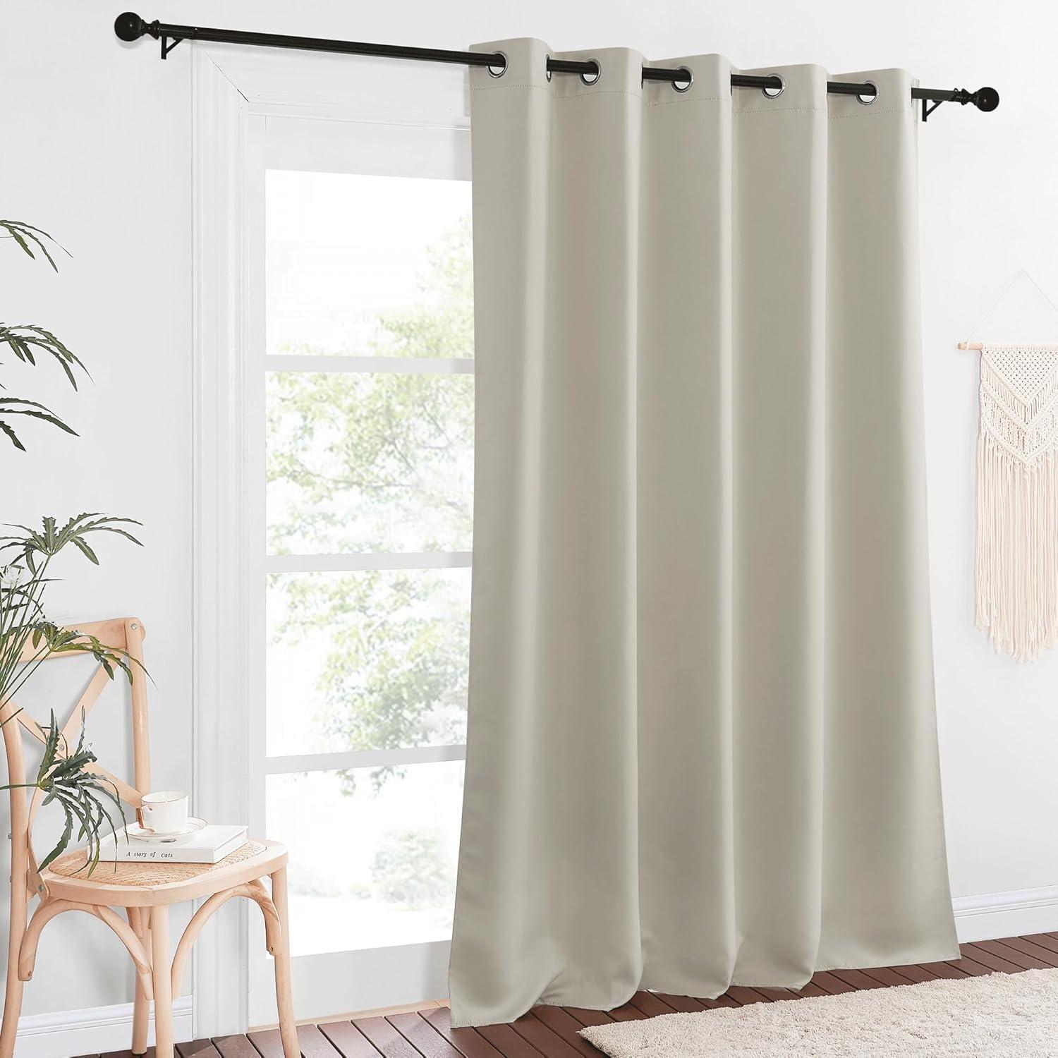 NICETOWN Patio Blackout Curtain Panels – Extra Wide Sliding Door Thermal Insulated Drape, Privacy Room Divider Curtain for Bedroom Office (Natural, 66 x 118 Inch Long)