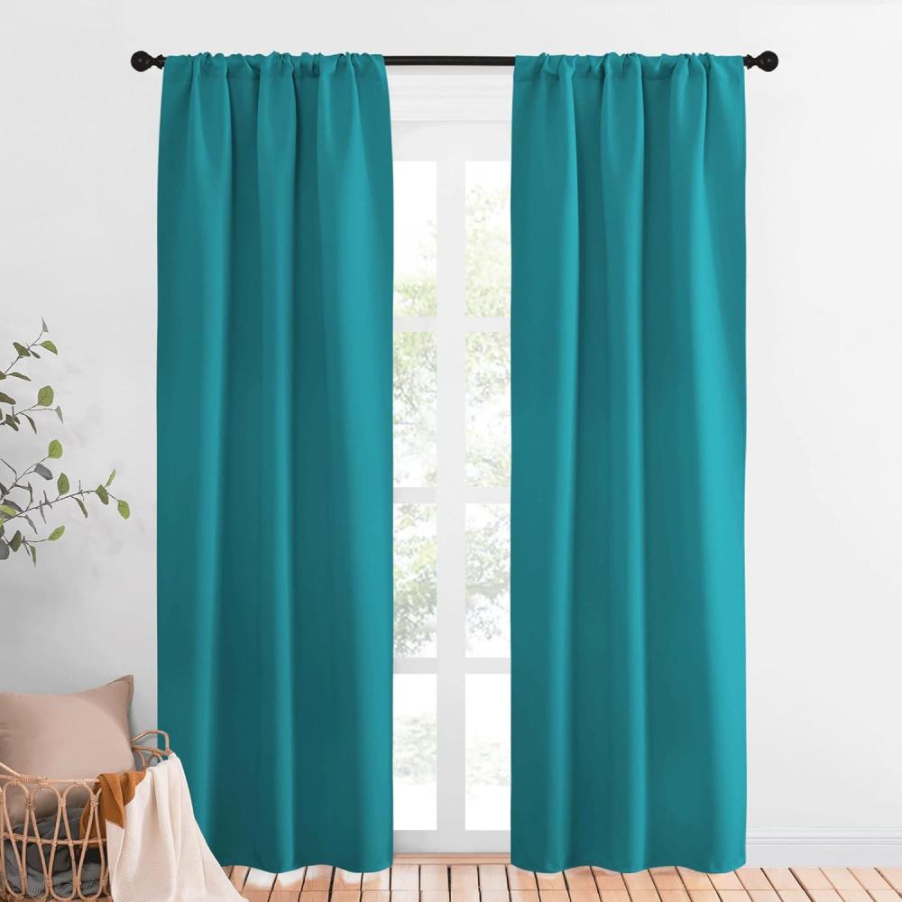 imageNICETOWN Peacock Blue Blackout Curtains Panels for Window Thermal Insulated Rod Pocket Blackout DrapesDraperies for Living Room 2 Panels W34 x L84 inches
