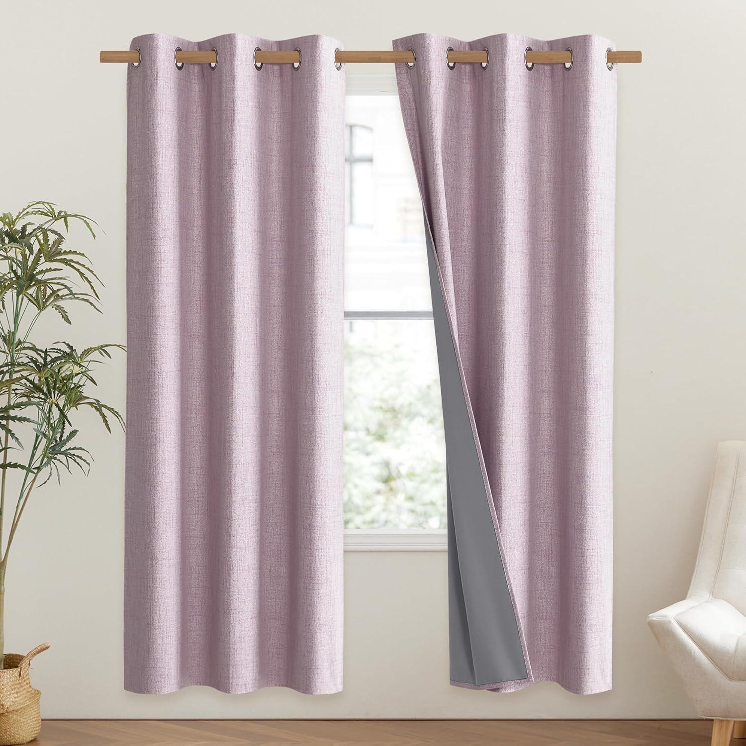 imageNICETOWN Pink Vintage Linen 100 Blackout Curtains for Classroom Thermal Insulated Curtains 72quot Long Noise Reducing Window Treatment Drapes for Gym Room 42quot Wide Per Panel Set of 2