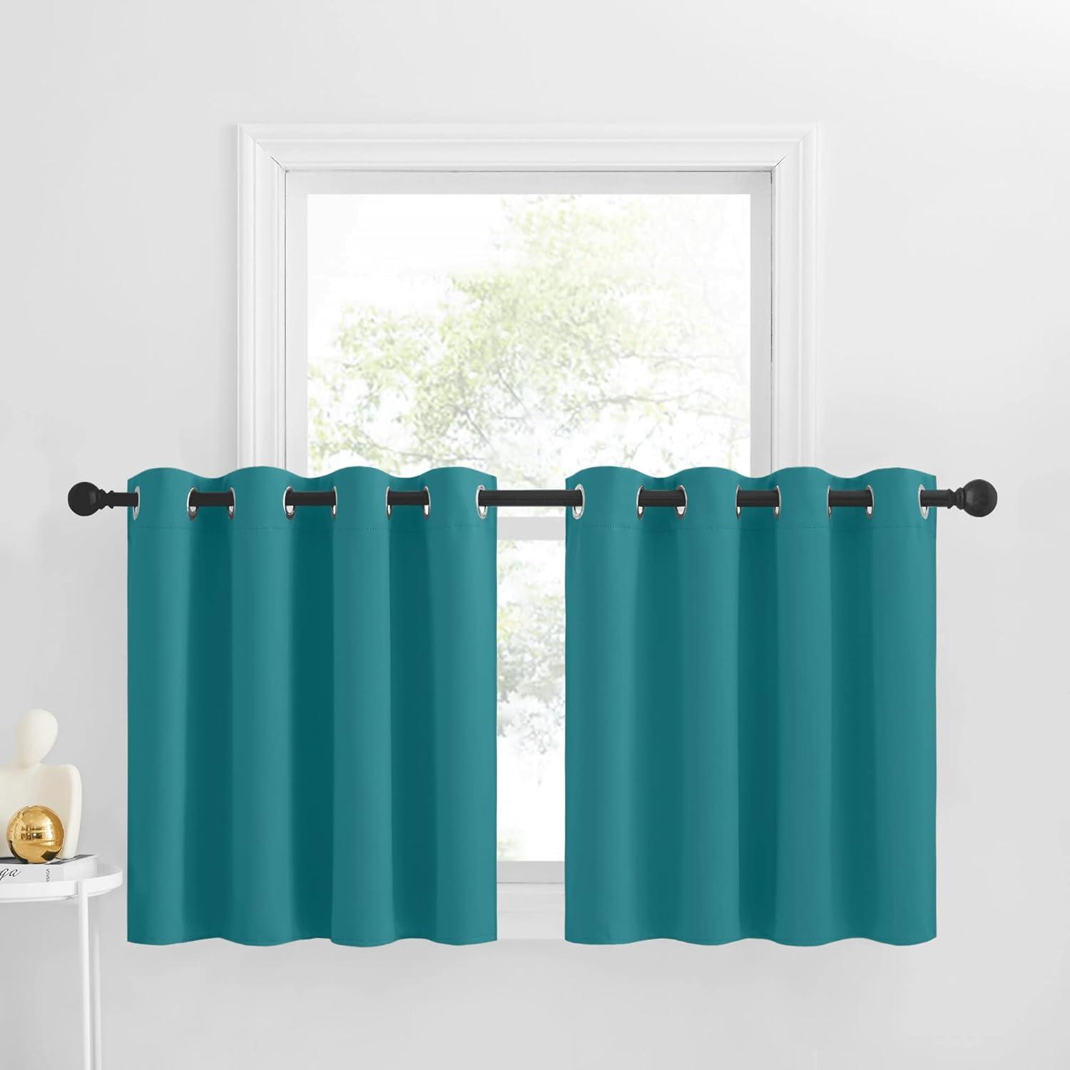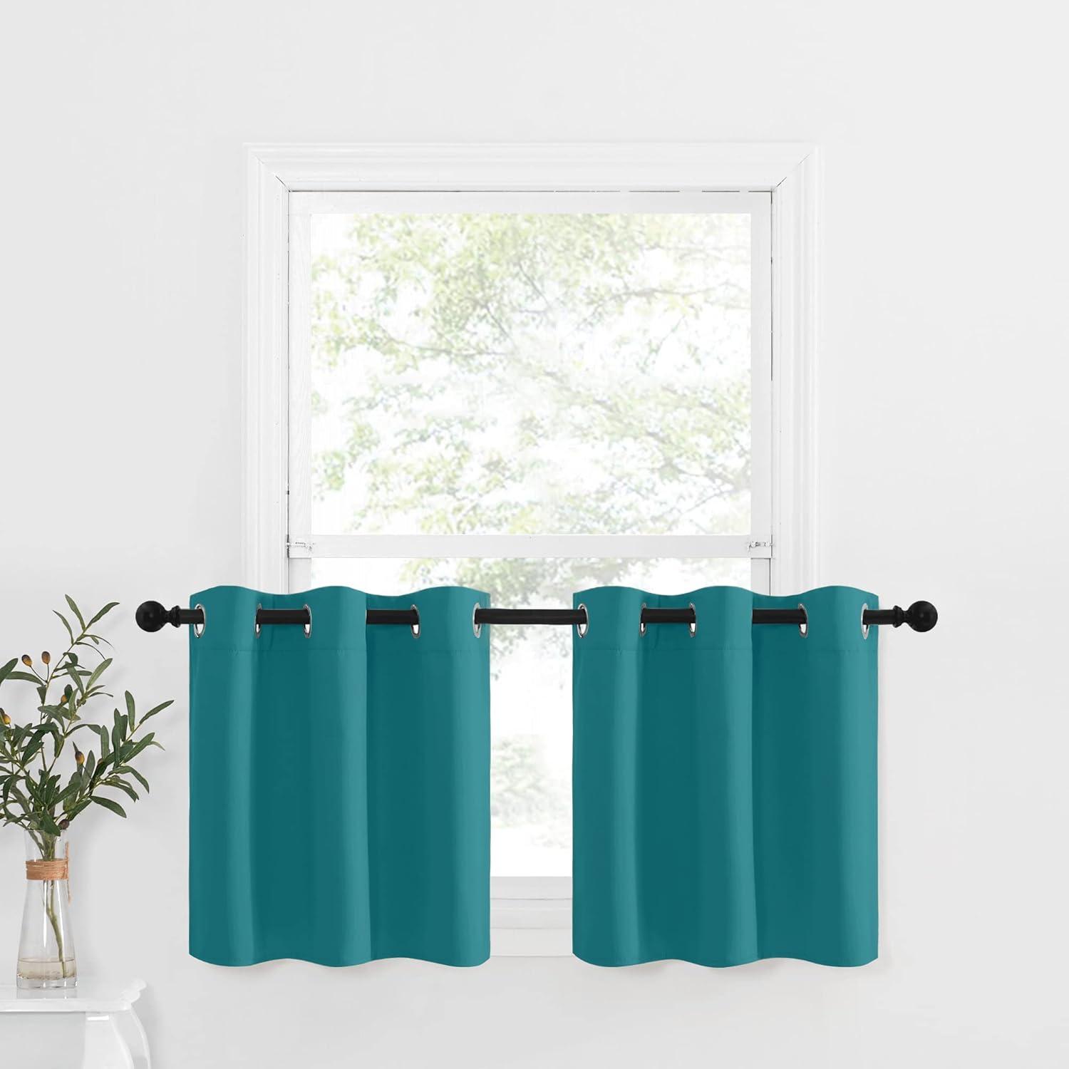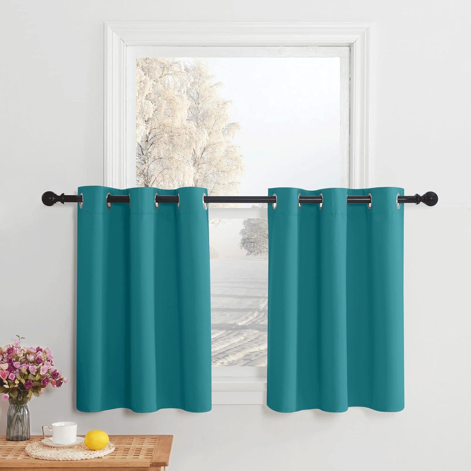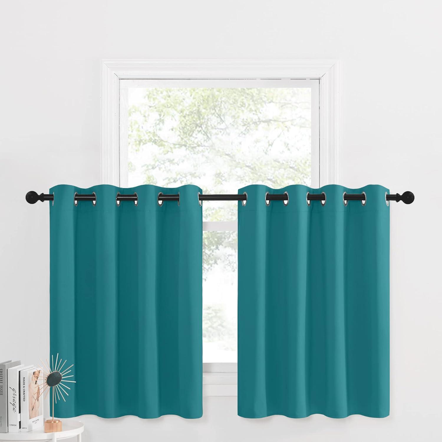 NICETOWN Red Blackout Tiers Window Curtains 30 inch Length 2 Panels, Short Tiers for Home Decor Small Kitchen Christmas Curtains for Half Window (52 by 30 Inch, 2 Panels, Burgundy Red)(Peacock Teal)