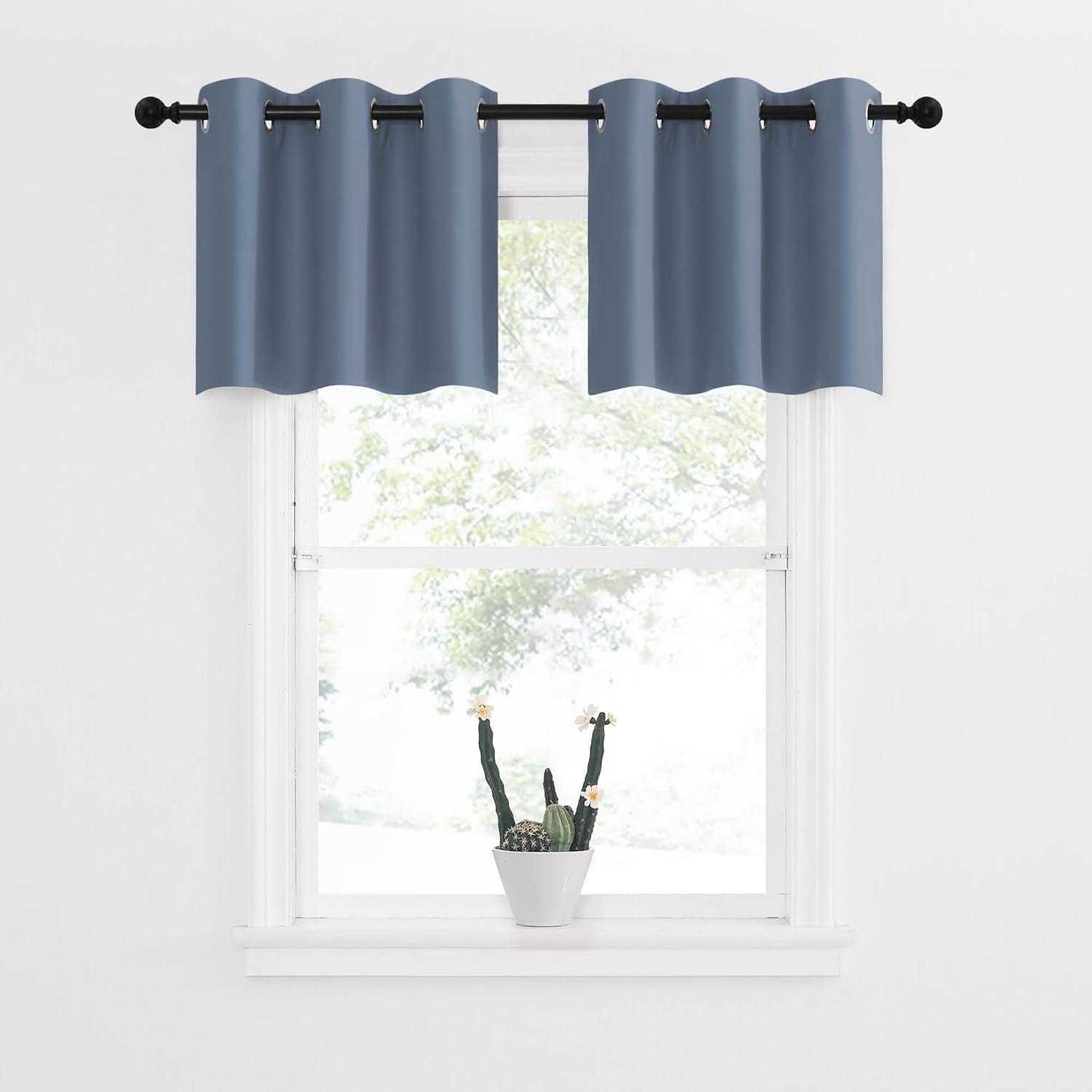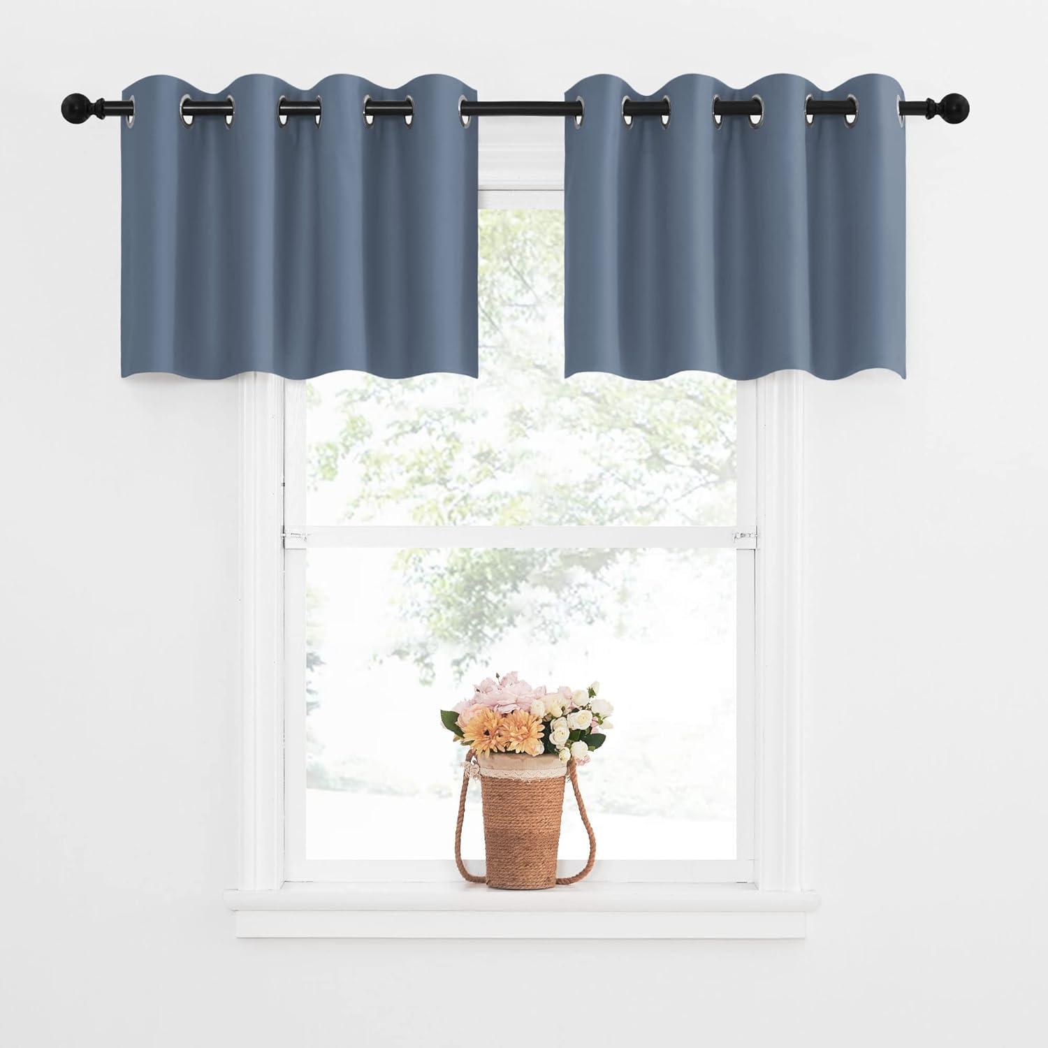 • All sizes valance feature 1.6-inch inter-diameter round silvery grommets for easy hanging on decorative rods. With super soft and heavy innovative triple-weave fabric, you will fall in love with such quality fabric. 1.2″ header (measured from curtains' top edge to the ring top) and 36″ length (measured from ring top to curtains' bottom edge) make the valances look nice when you install them.