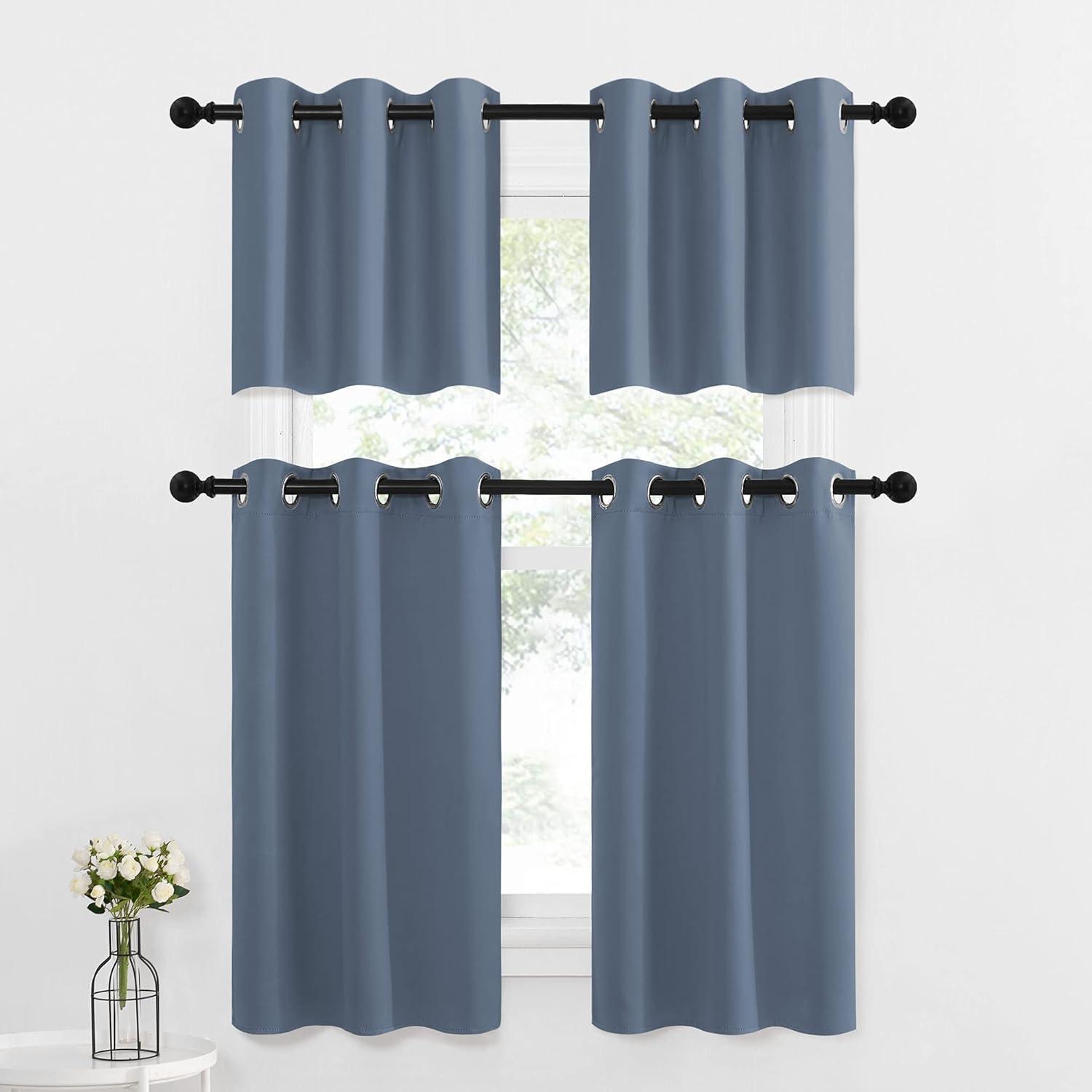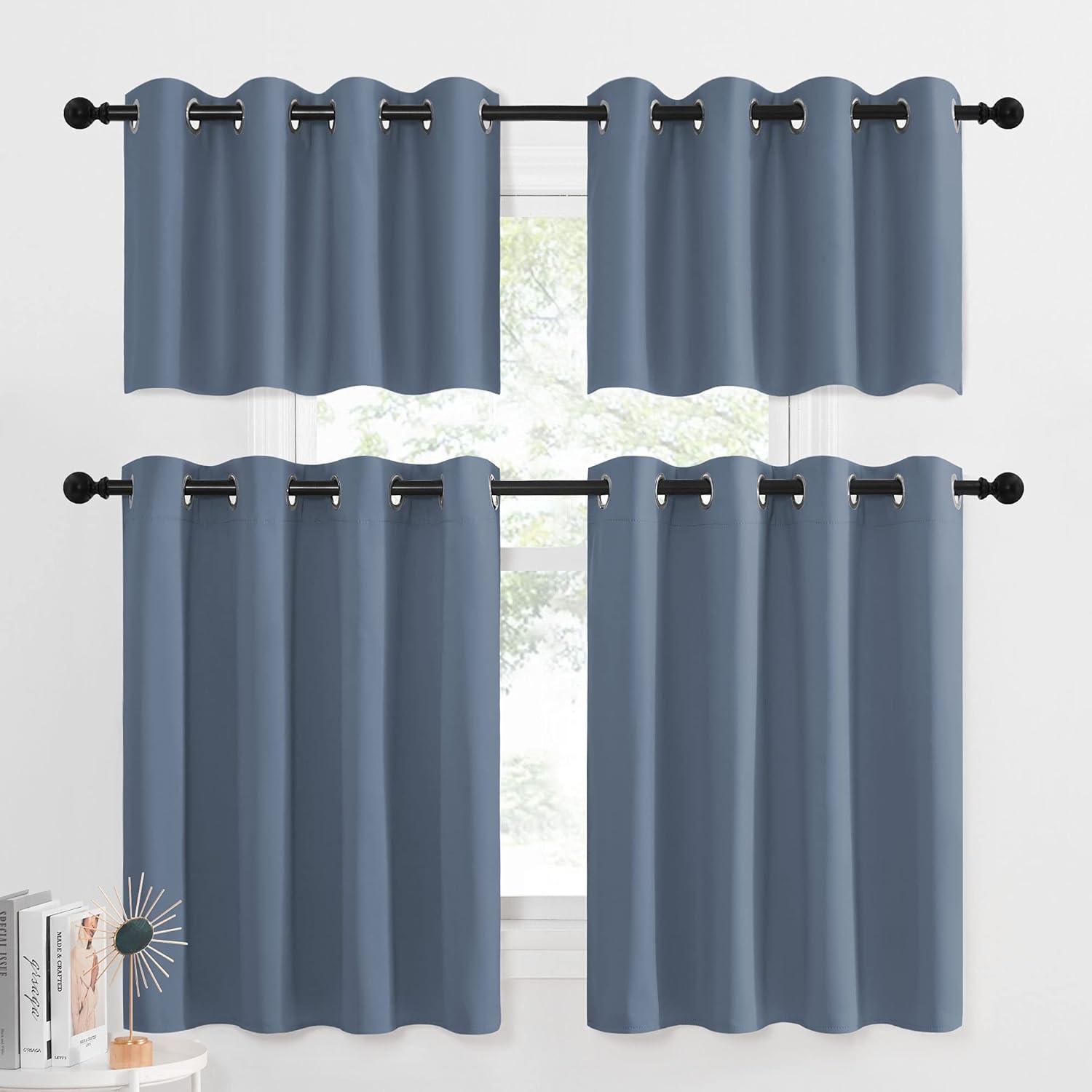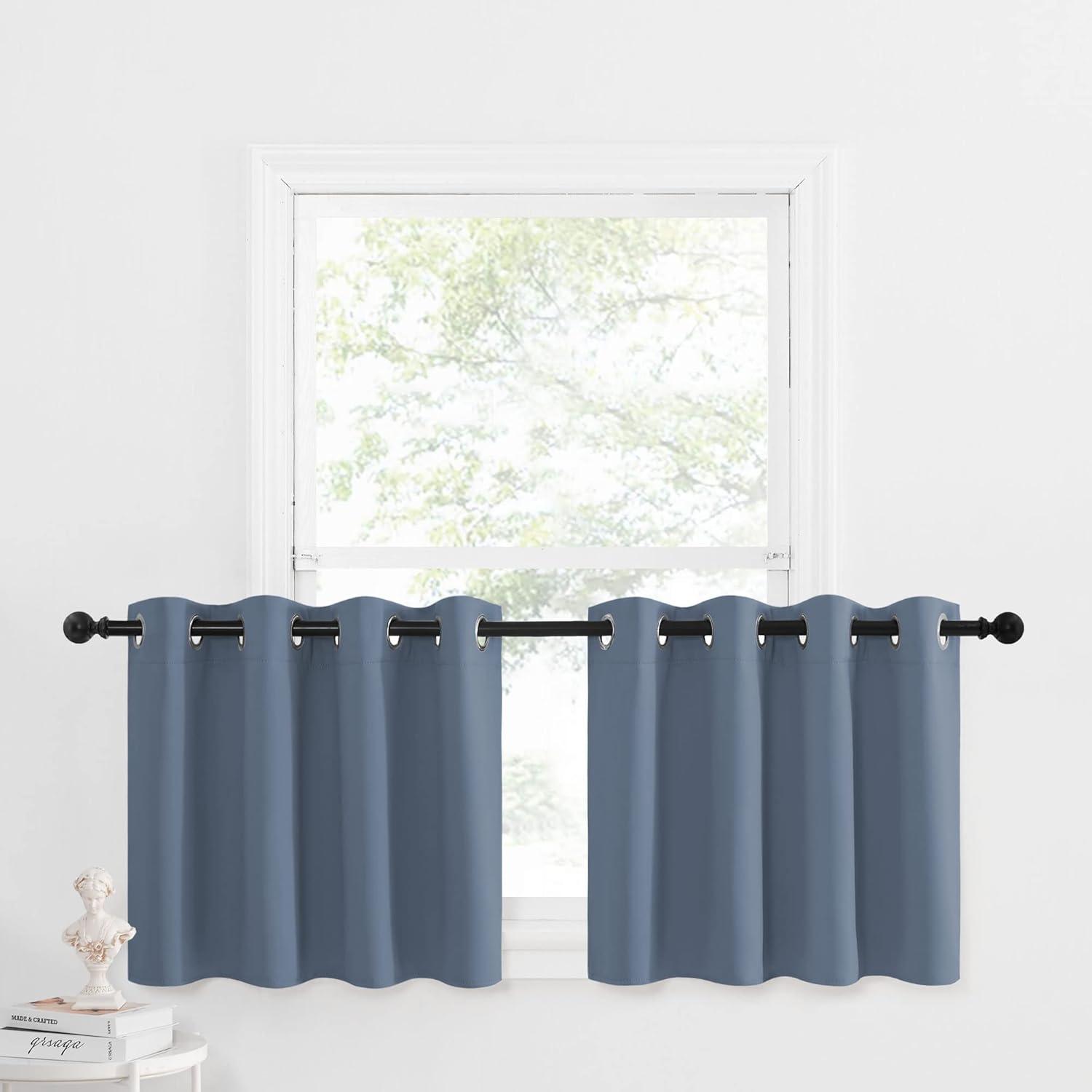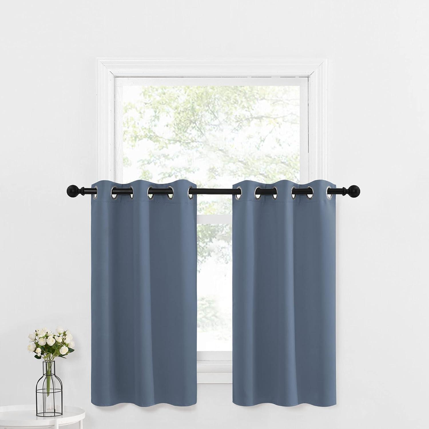 NICETOWN Red Blackout Tiers Window Curtains 30 inch Length 2 Panels, Short Tiers for Home Decor Small Kitchen Christmas Curtains for Half Window (52 by 30 Inch, 2 Panels, Burgundy Red)(Stone Blue)