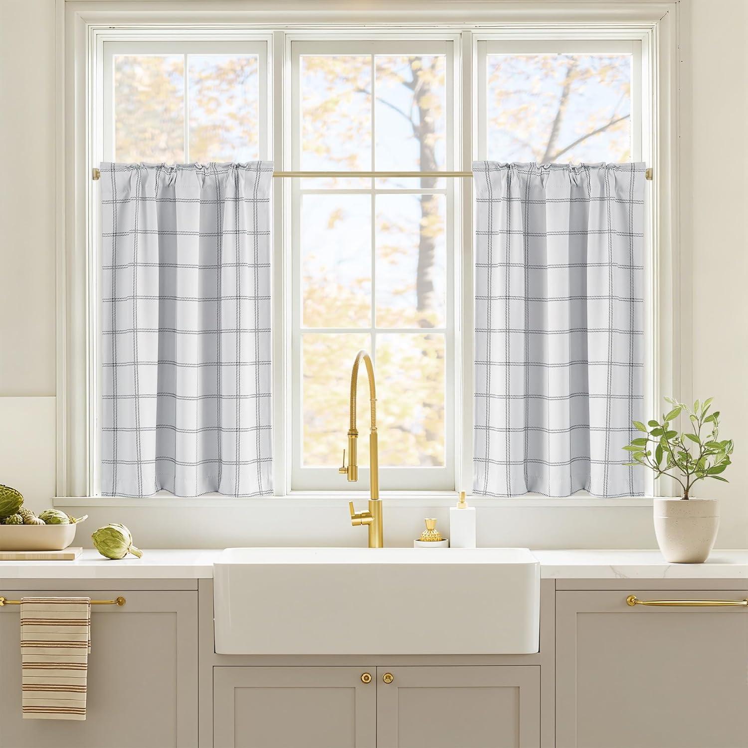 NICETOWN Red Christmas Buffalo Plaid Gingham Cafe 100% Blackout Curtains 36 Inch Length, Farmhouse Rustic Checkered Half Window Tier Curtain for Kitchen Bathroom, 26″ W x 36″ L, 2 Panels(Grid Pattern | White & White)