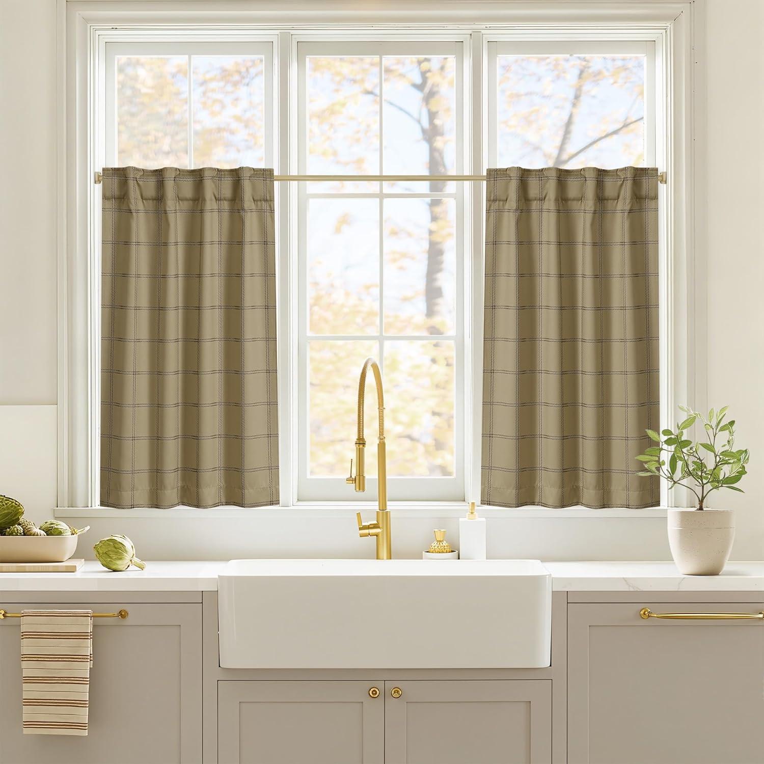 NICETOWN Red Christmas Buffalo Plaid Gingham Cafe 100% Blackout Curtains 36 Inch Length, Farmhouse Rustic Checkered Half Window Tier Curtain for Kitchen Bathroom, 26″ W x 36″ L, 2 Panels(Grid Pattern | Burlap & White)